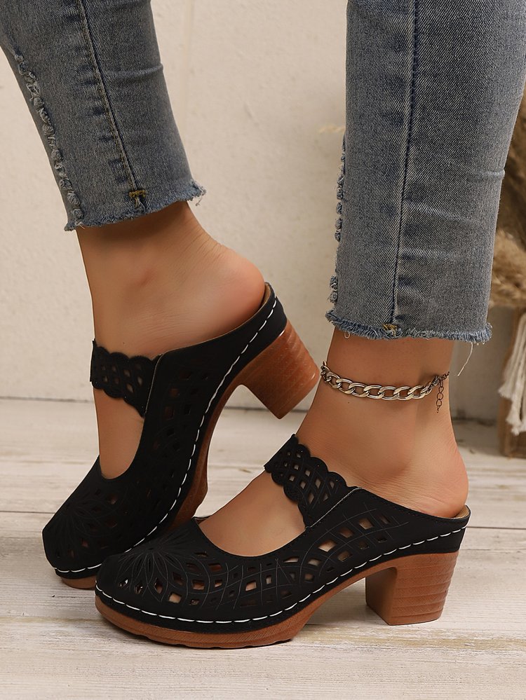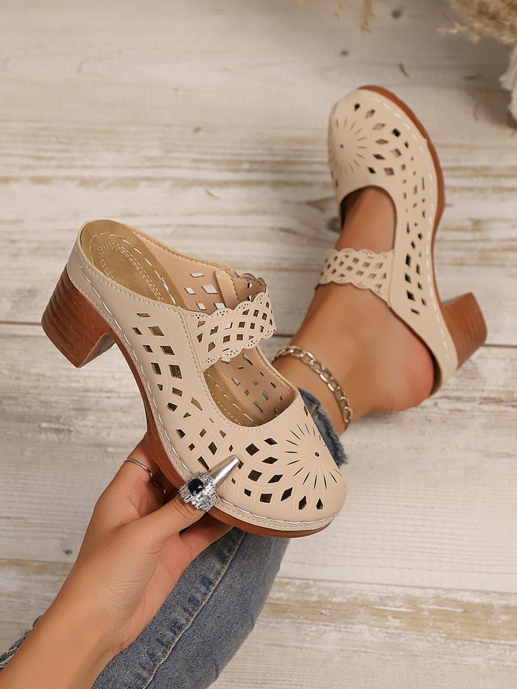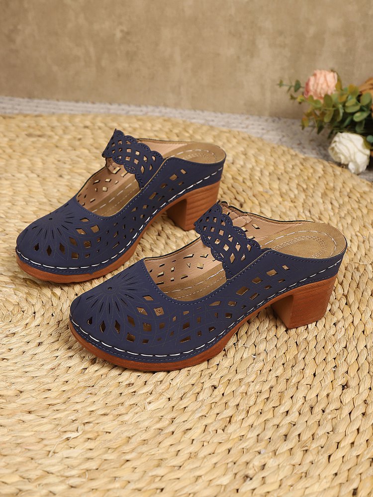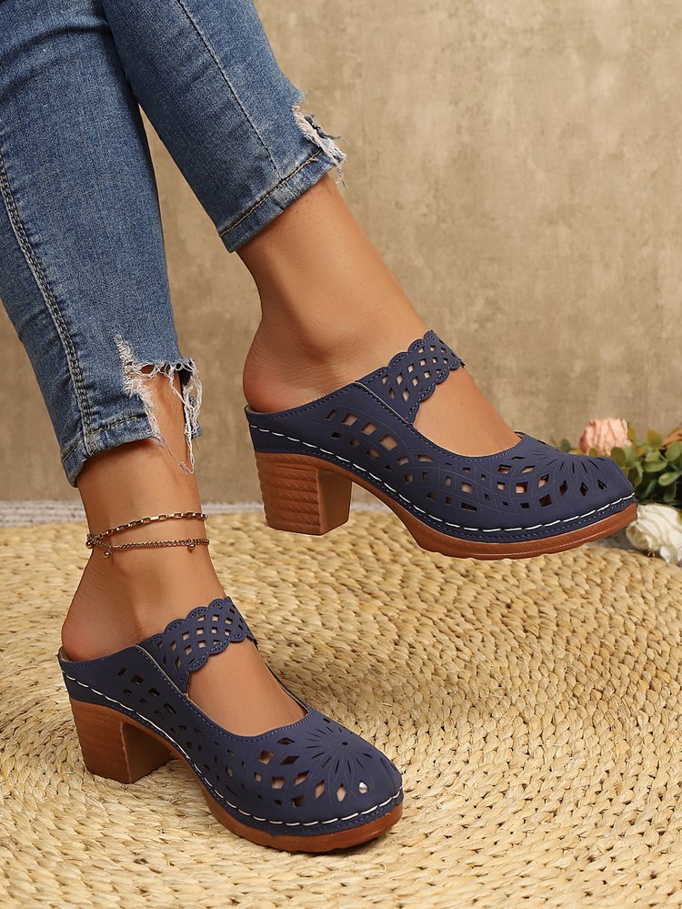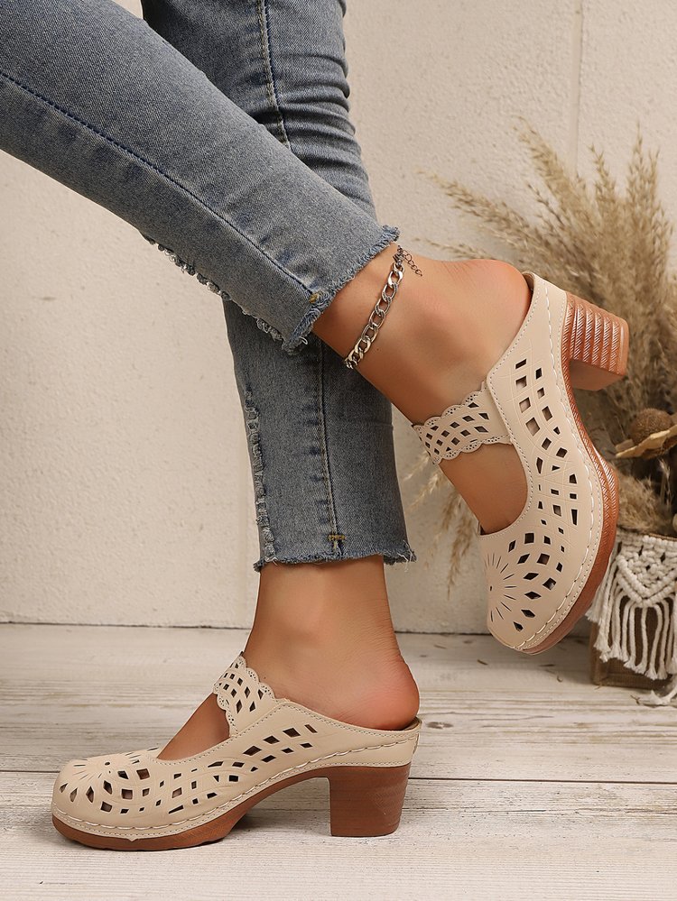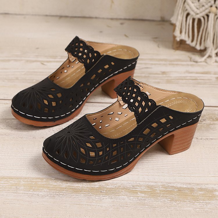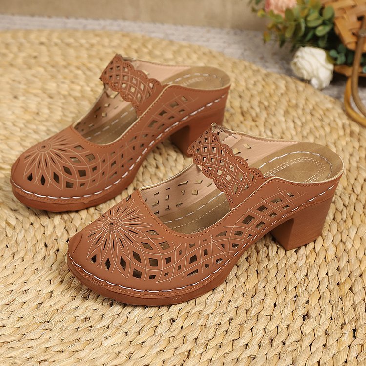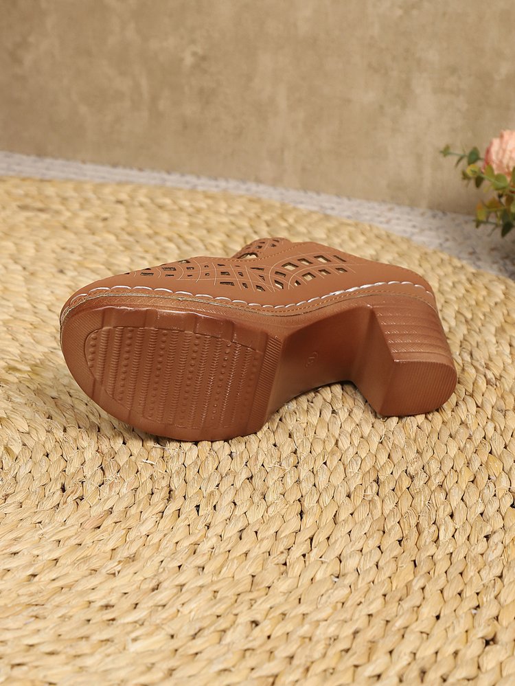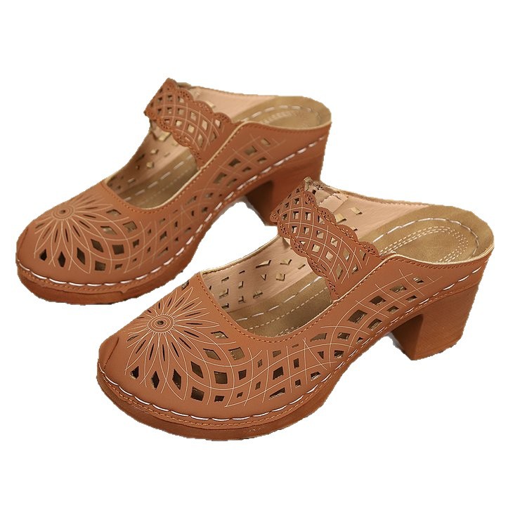 Женские летние босоножки 2025 года, большие размеры, толстый высокий каблук, с перфорацией, на широкую ногу, сандалии-слипоны