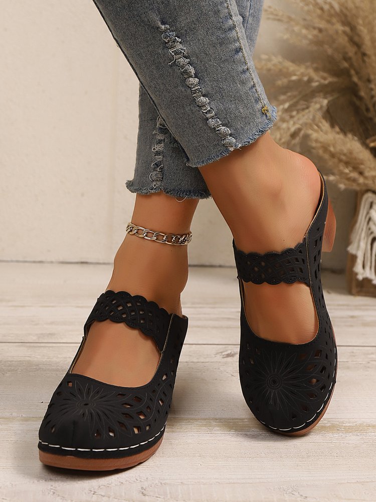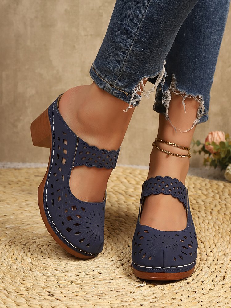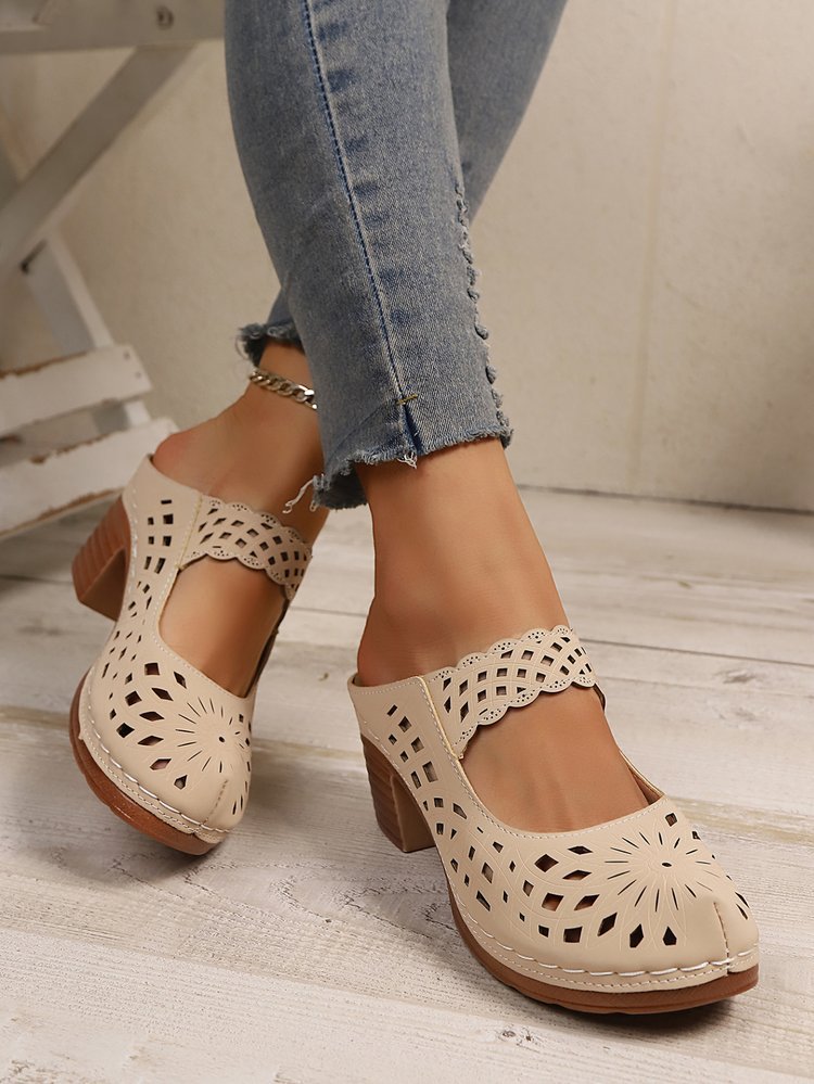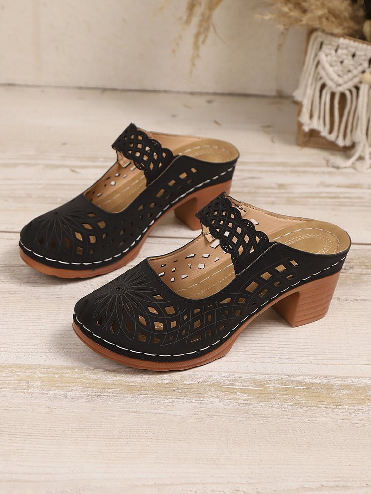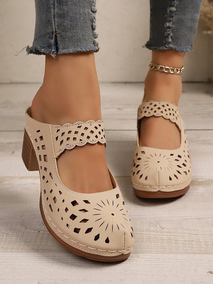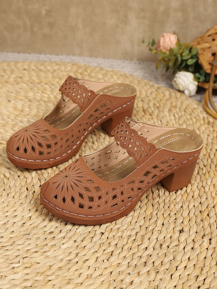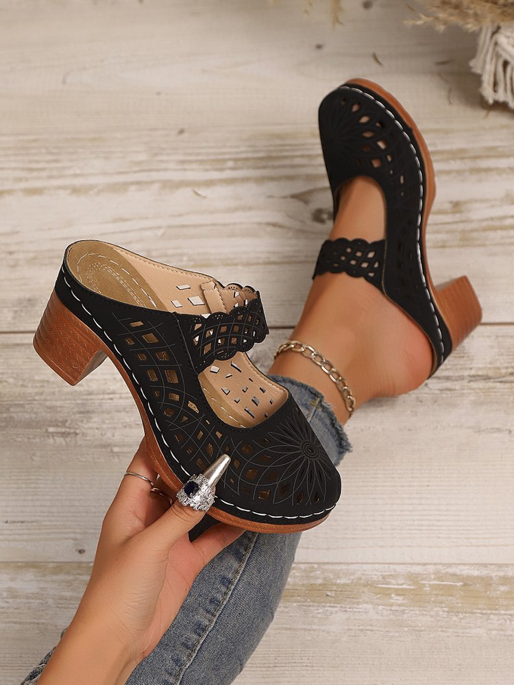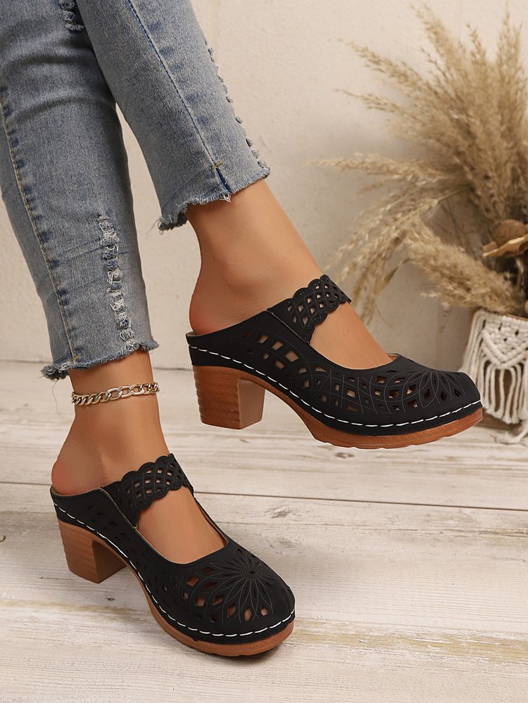 Женские летние босоножки 2025 года, большие размеры, толстый высокий каблук, с перфорацией, на широкую ногу, сандалии-слипоны