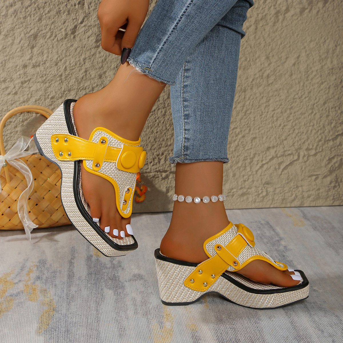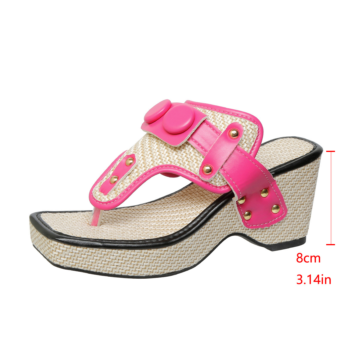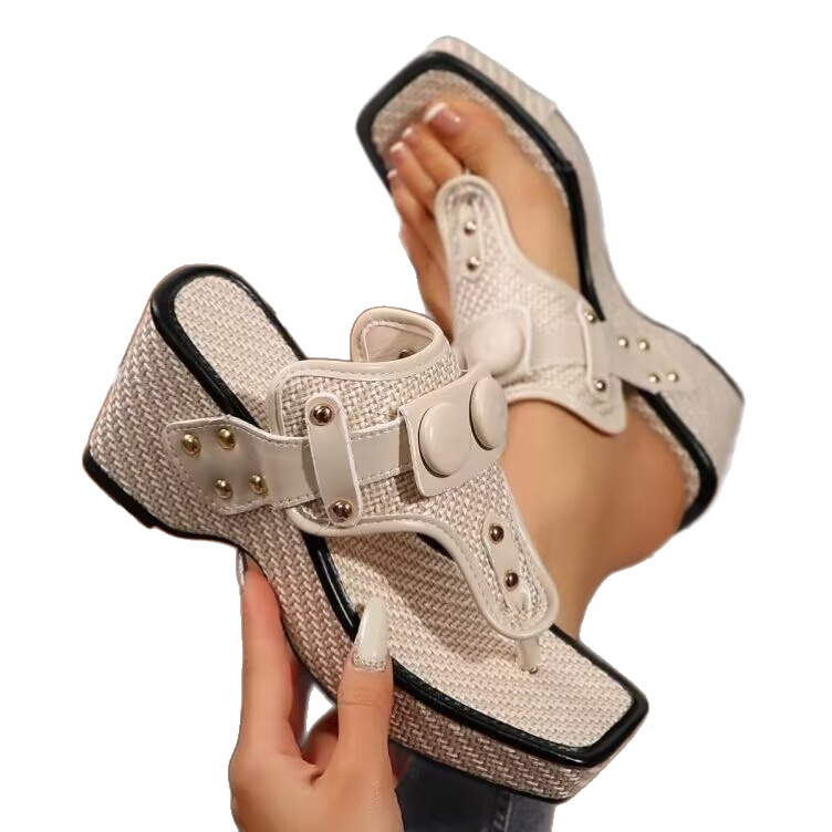 Bohemian прохладный склон с толстым дном, сандалии, заклепки, элегантный, вечеринка, простой, сплошной цвет, лето