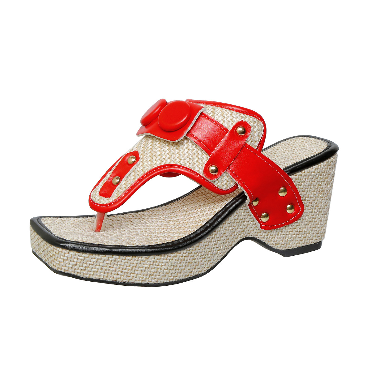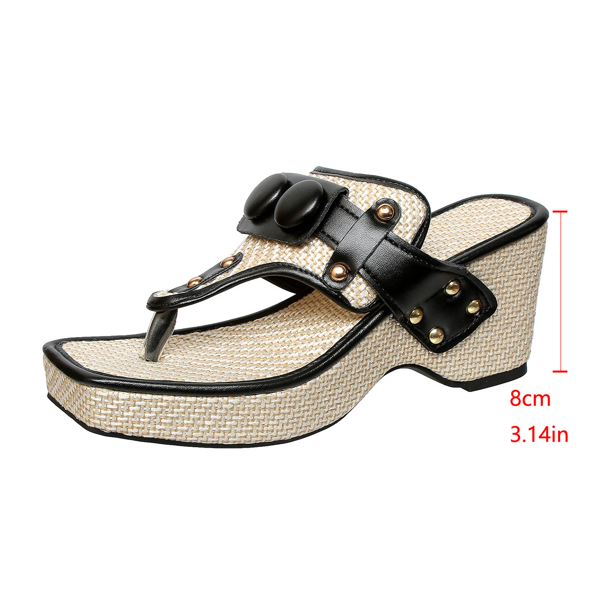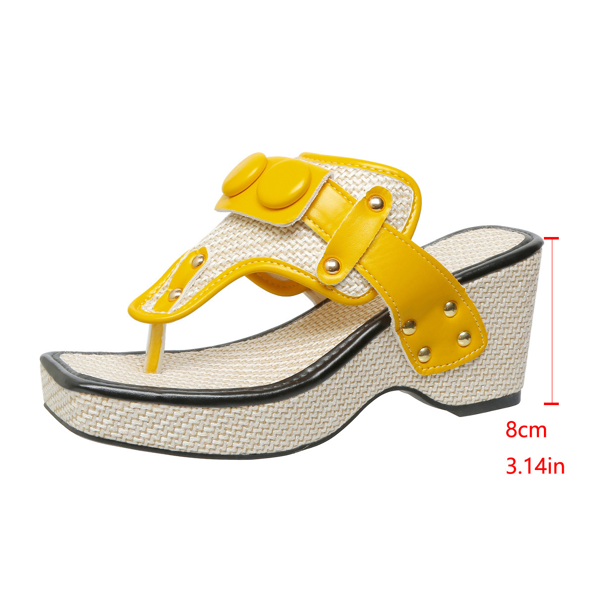 Bohemian прохладный склон с толстым дном, сандалии, заклепки, элегантный, вечеринка, простой, сплошной цвет, лето