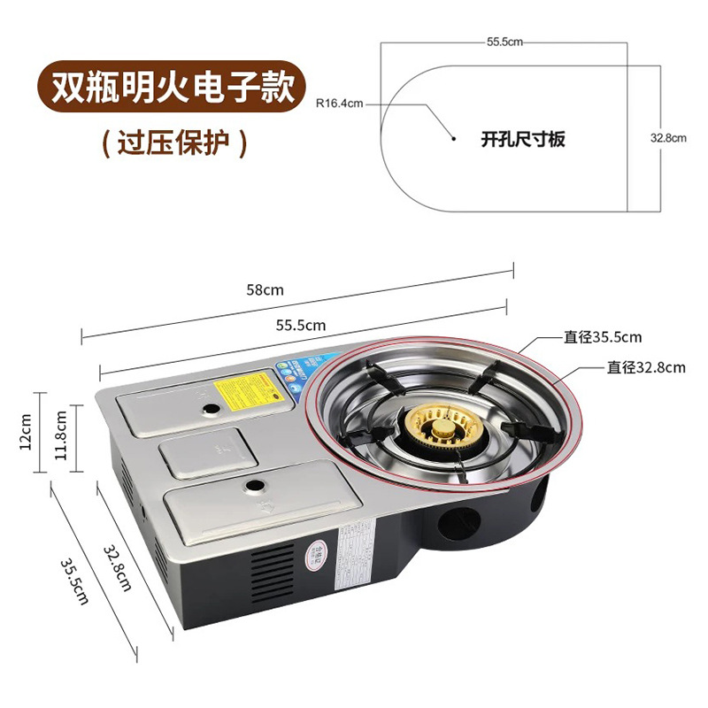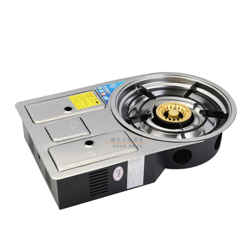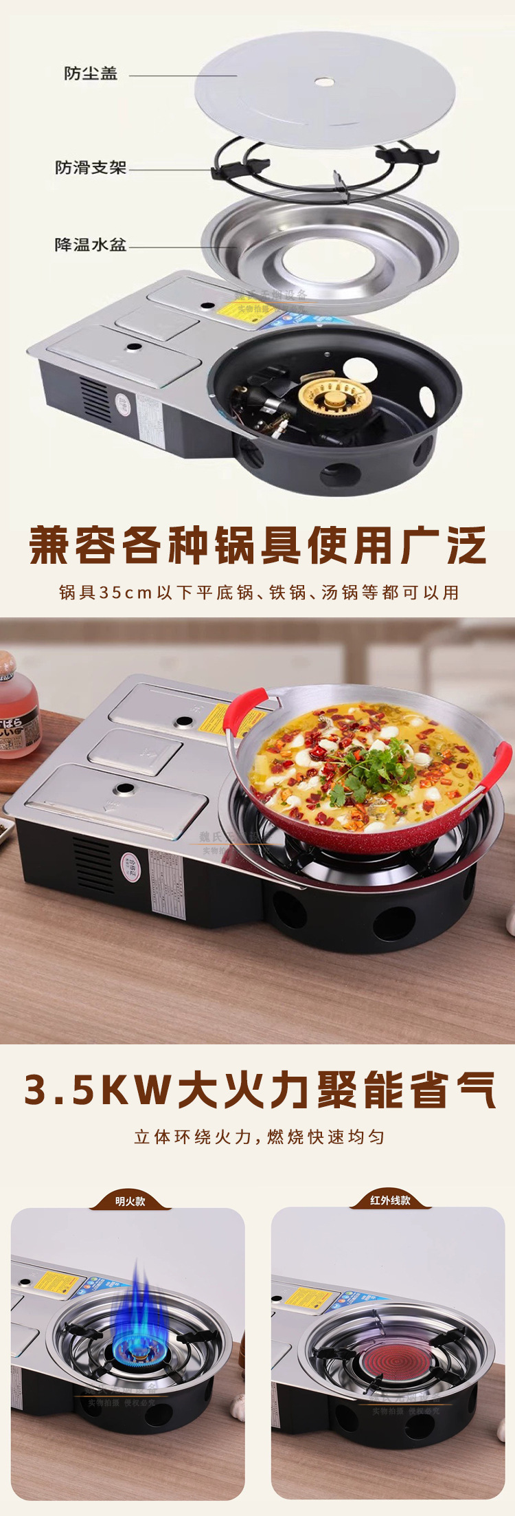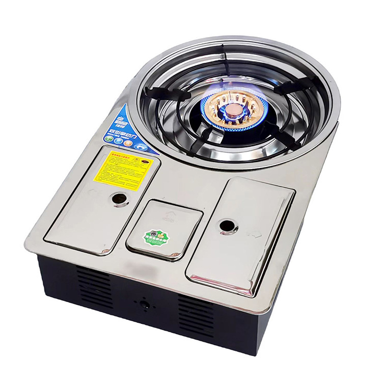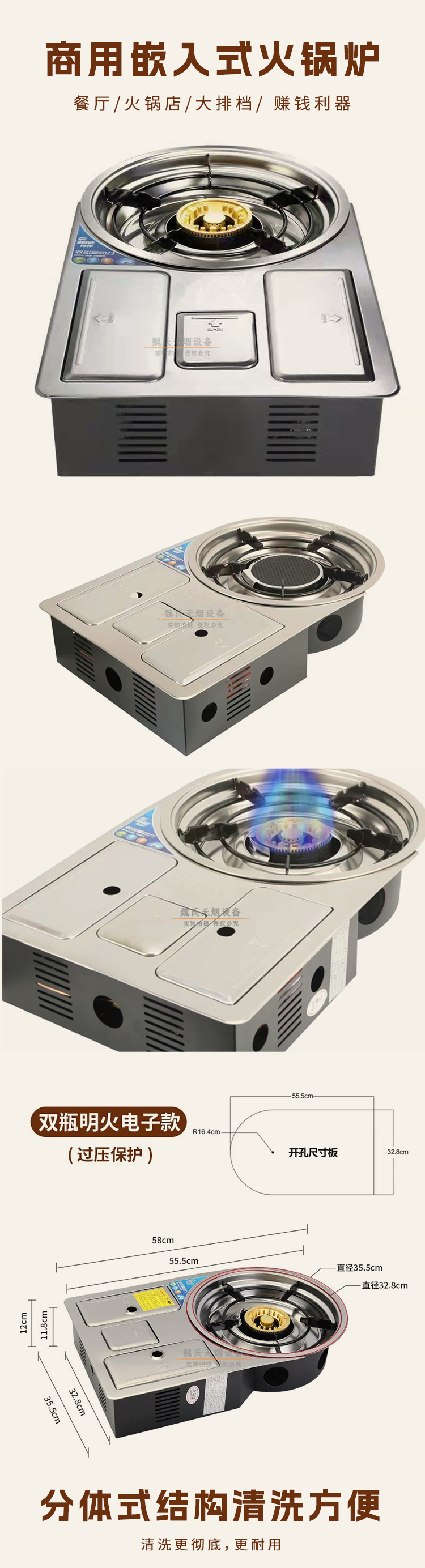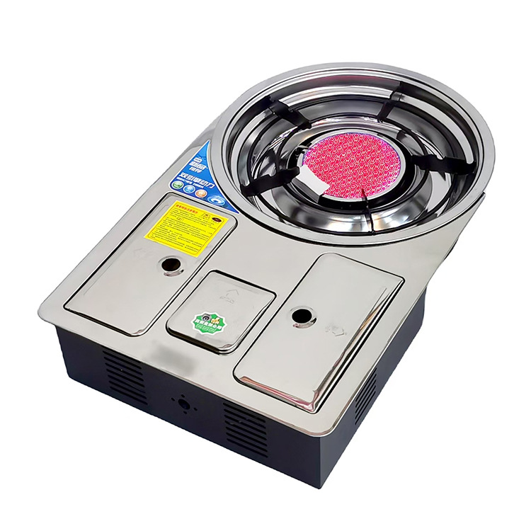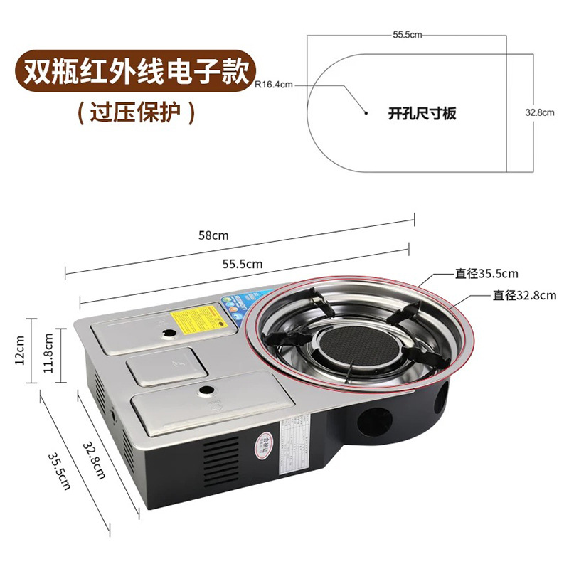 Мощная коммерческая плита для хот-пота и корейского барбекю, встраиваемая, бытовая, с двумя конфорками и двумя резервуарами