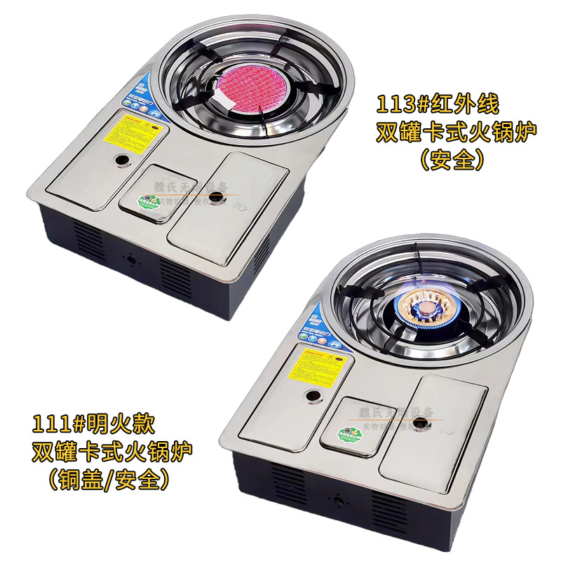 Кассетная плита с двойным резервуаром и открытым пламенем (с защитой от избыточного давления); Инфракрасная кассетная плита с двойным резервуаром (с защитой от перенапряжения); Кассетная плита с двойным резервуаром и открытым пламенем (с защитой от возгорания); Инфракрасная двухкамерная кассетная плита (с защитой от возгорания)