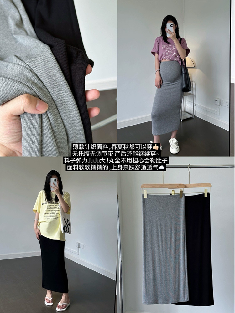 Вязаная юбка-миди для беременных больших размеров, весна/лето, тонкая серая облегающая длинная юбка прямого кроя.