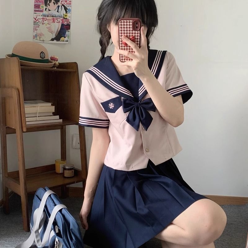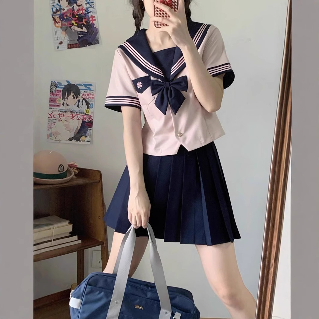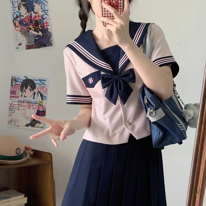Женский костюм с короткими рукавами и поясом Camellia, морской костюм дофамина, розовый милый костюм jk, настоящая оригинальная форма