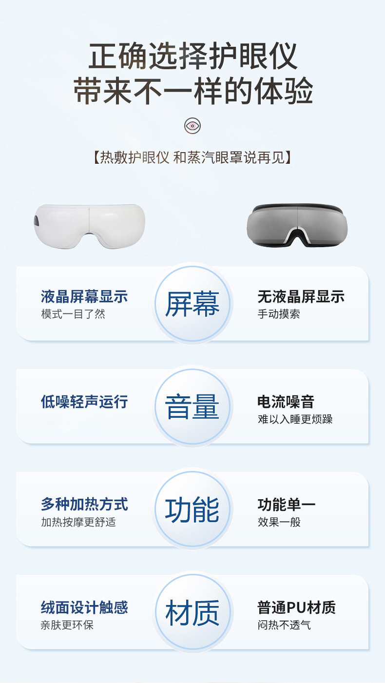 Устройство защиты глаз; Устройство защиты глаз, массаж и горячий компресс; Устройство защиты глаз, массажный горячий компресс, модель Bluetooth