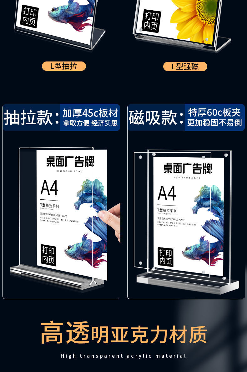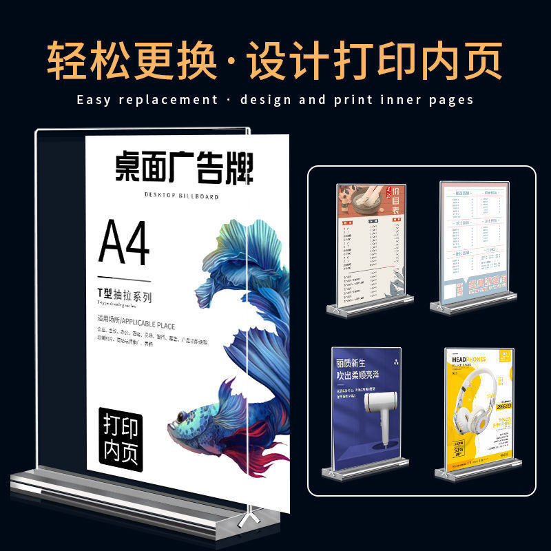 Акриловая подставка для дисплея A4, двусторонняя настольная вывеска, меню, прайс-лист, ценник, подставка для обеденных карточек, прозрачная
