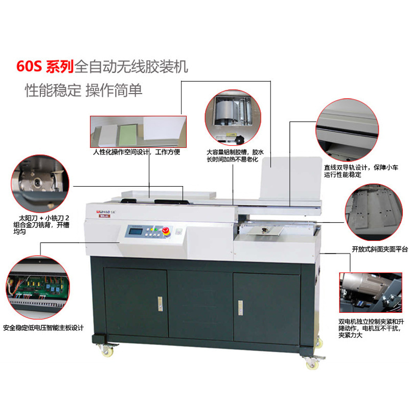 Wuhao 60S полностью автоматическая беспроводная машина для переплета клеем формата A3, документы формата A4, контрактная графика и текстовая пакетная переплетная машина для тендеров