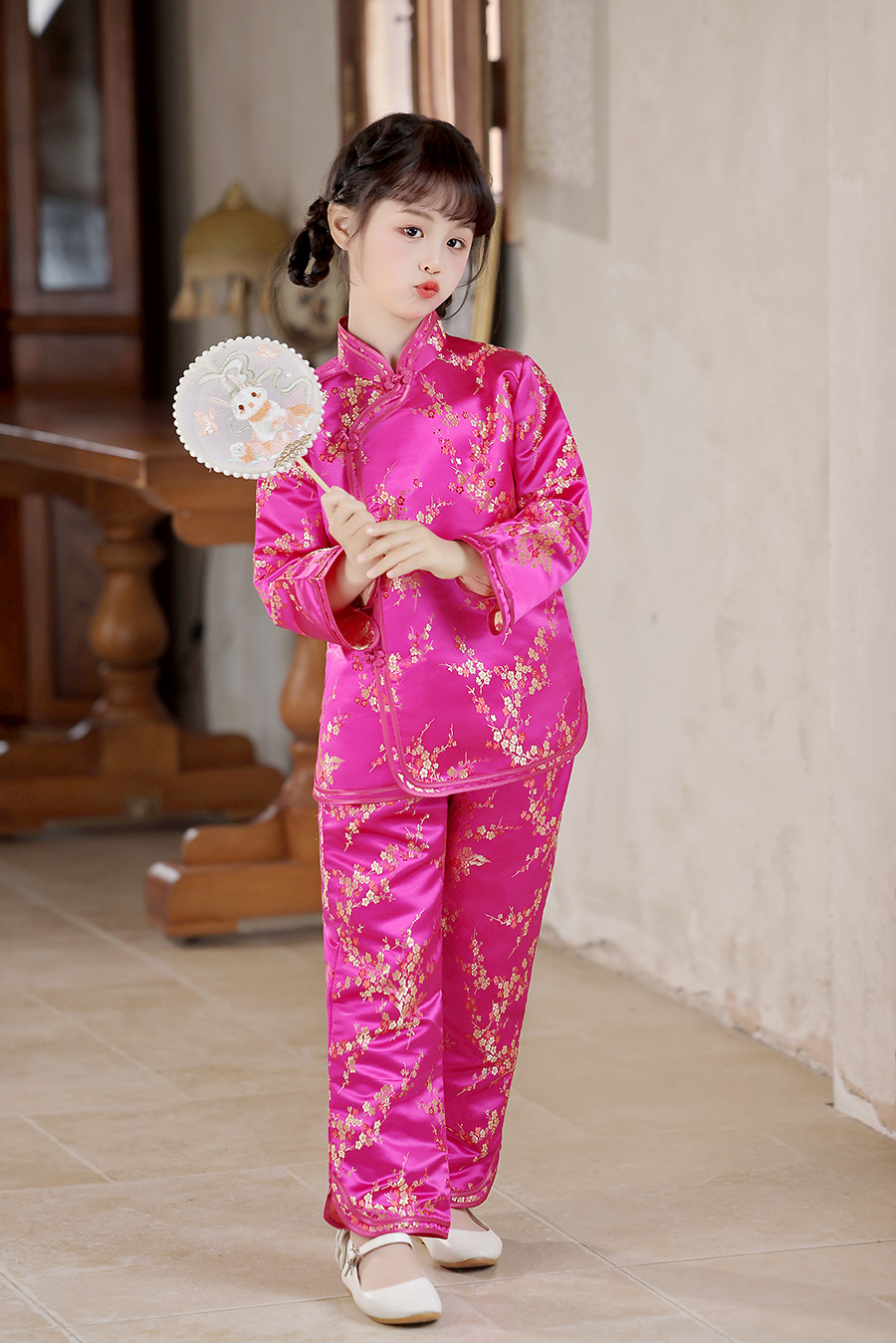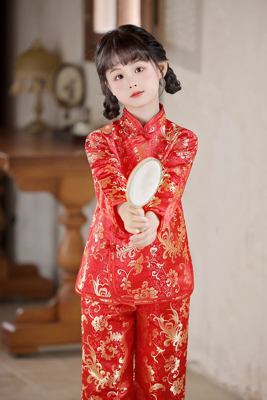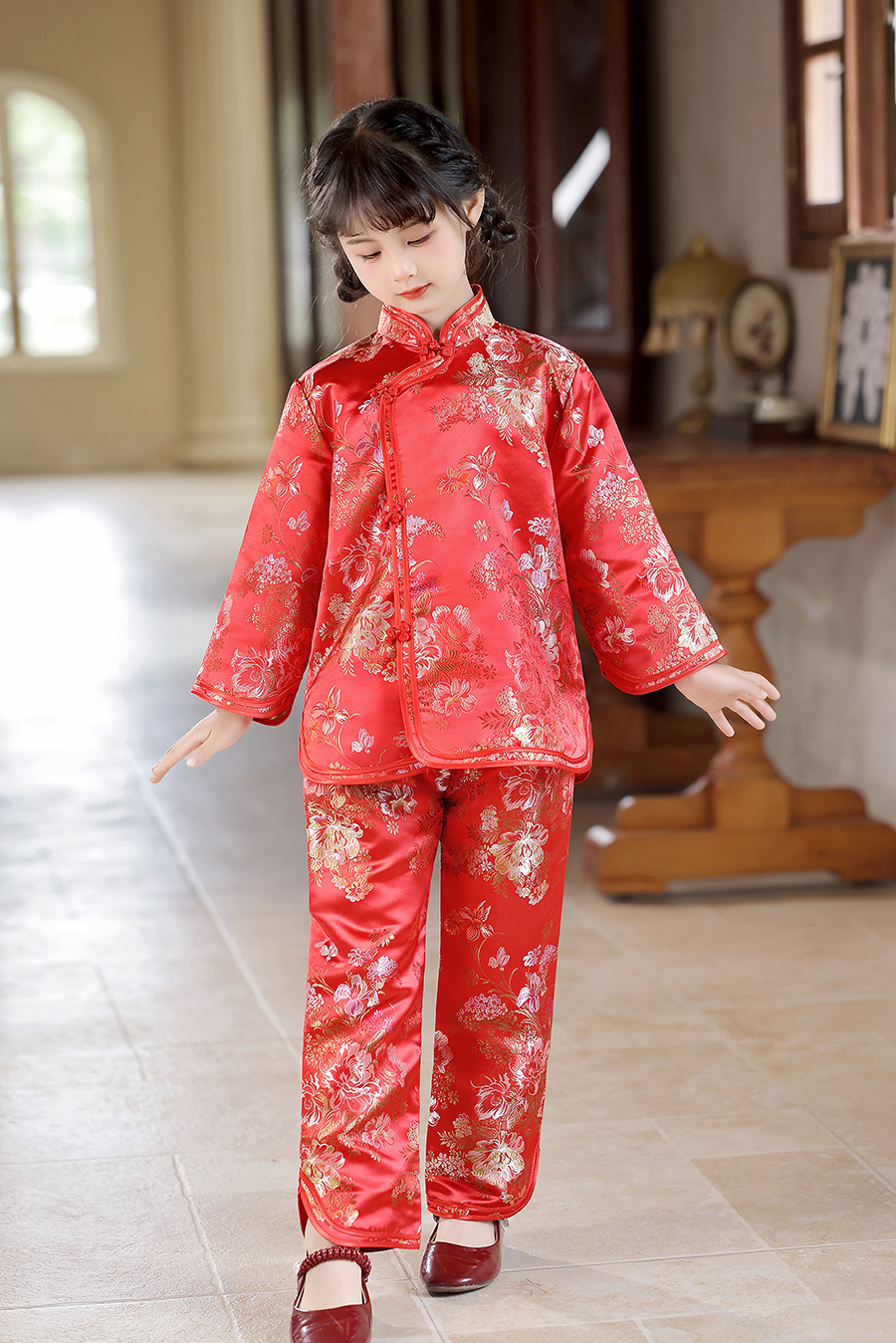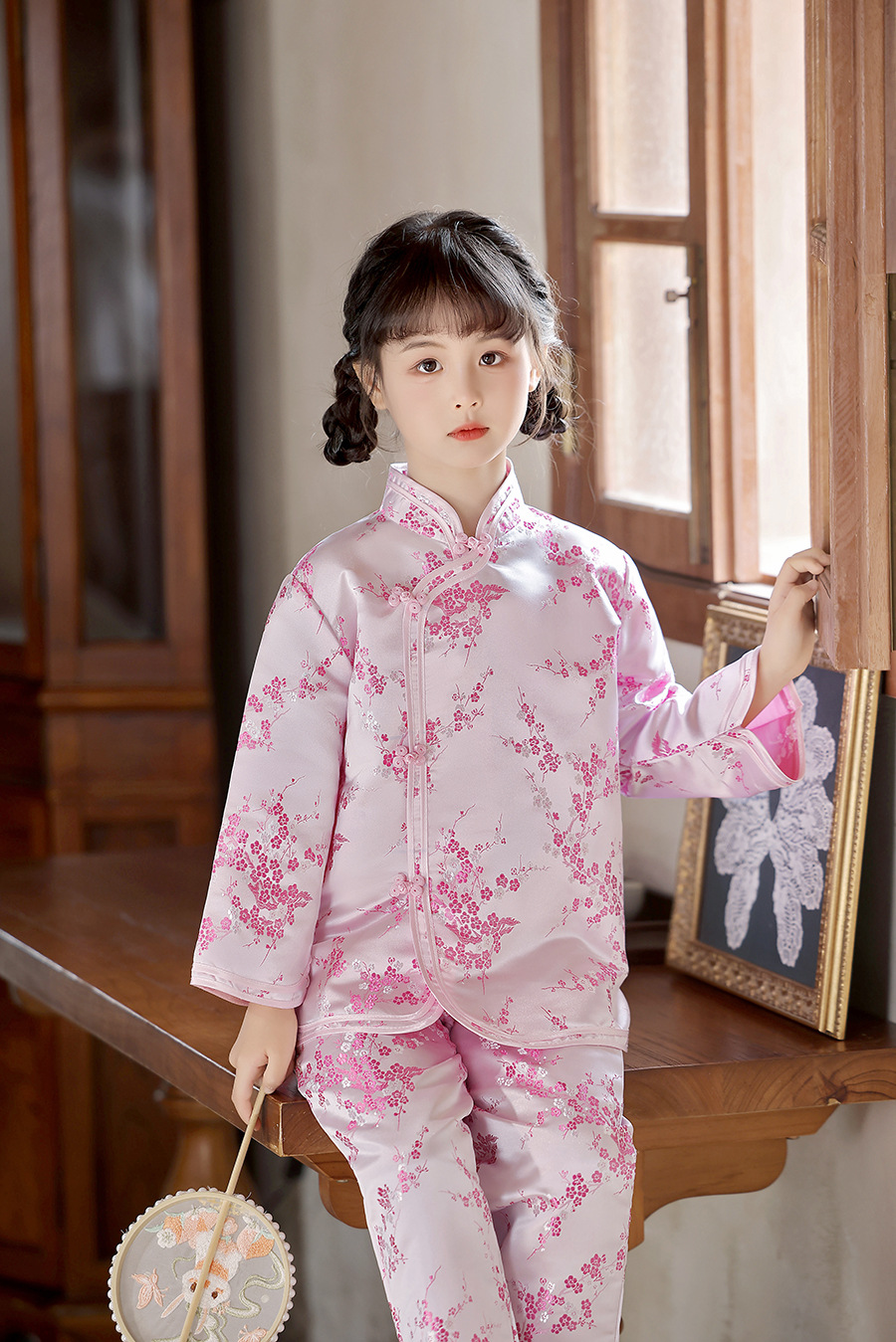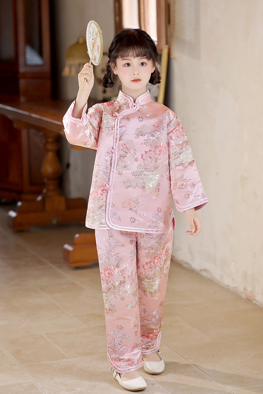 2025 Новый летне-осенний детский костюм Тан в ретро стиле, китайский стиль, топы и брюки для девочек, оптовая продажа, дропшиппинг
