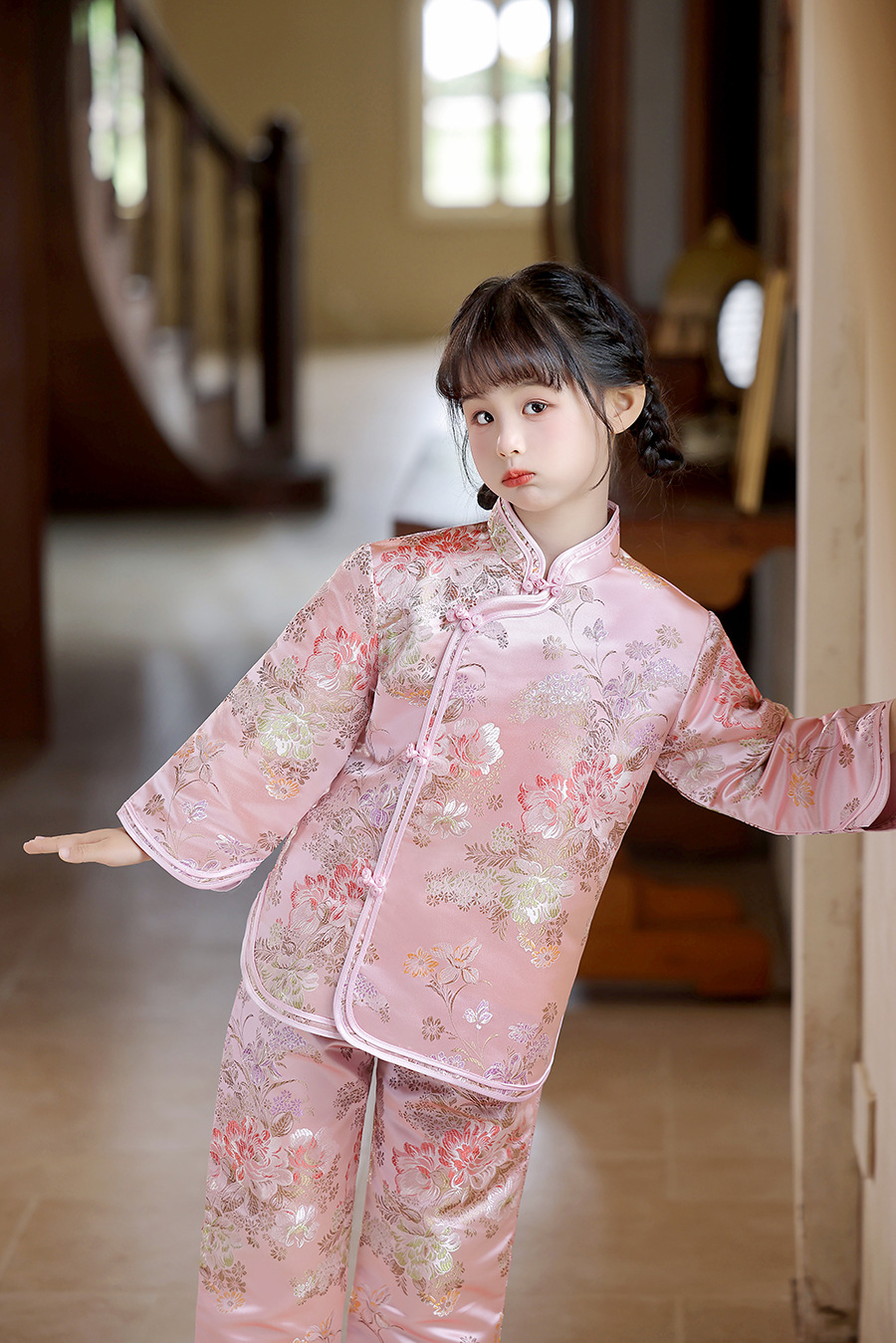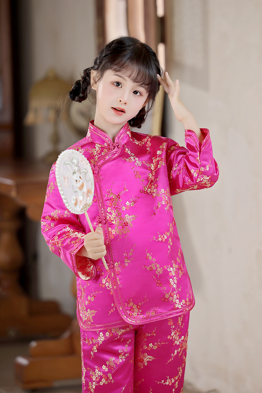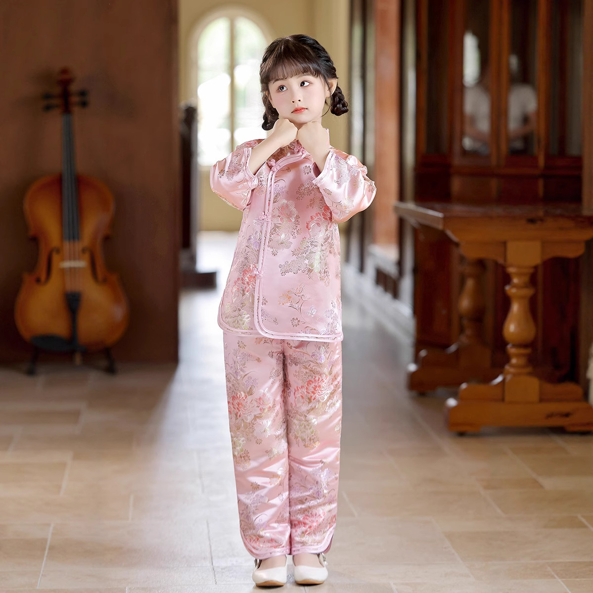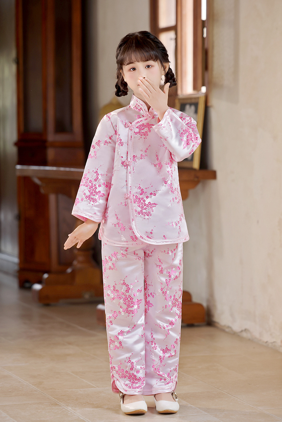 2025 Новый летне-осенний детский костюм Тан в ретро стиле, китайский стиль, топы и брюки для девочек, оптовая продажа, дропшиппинг