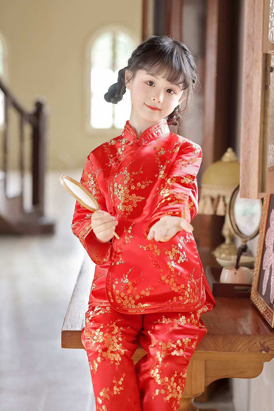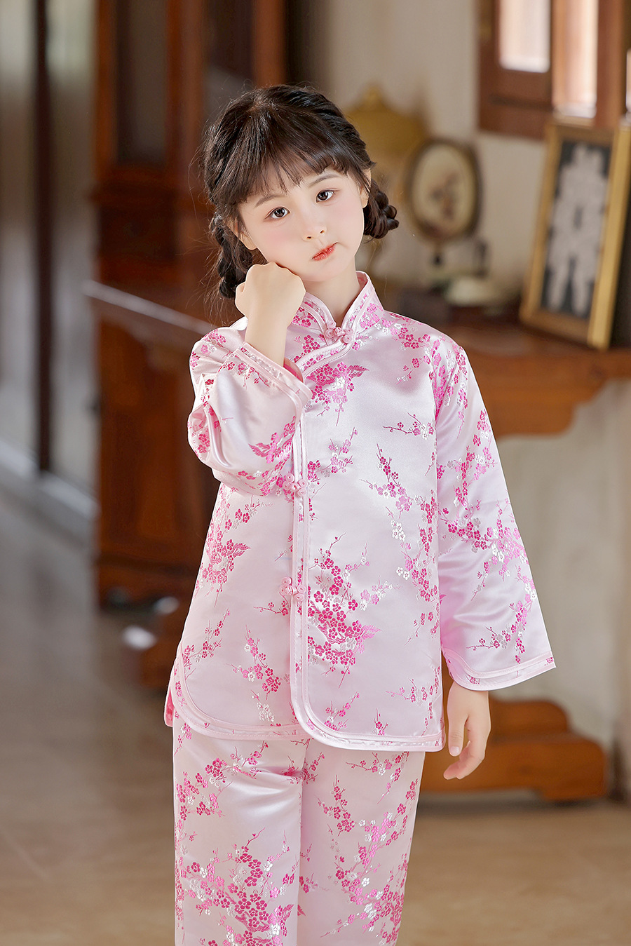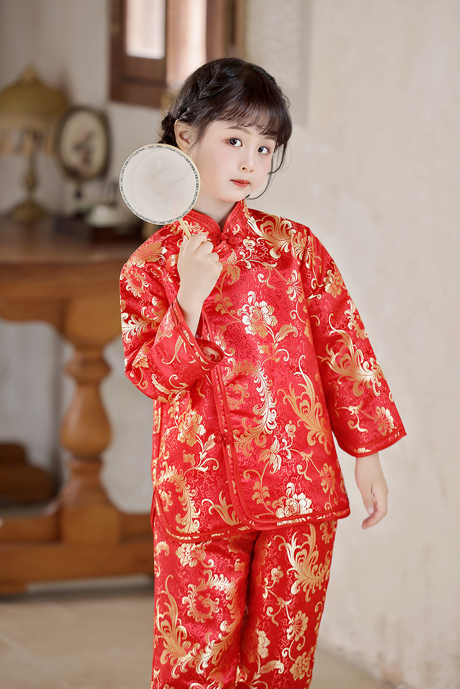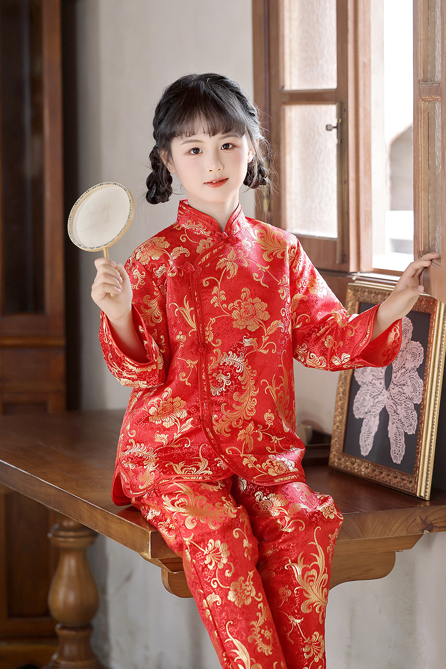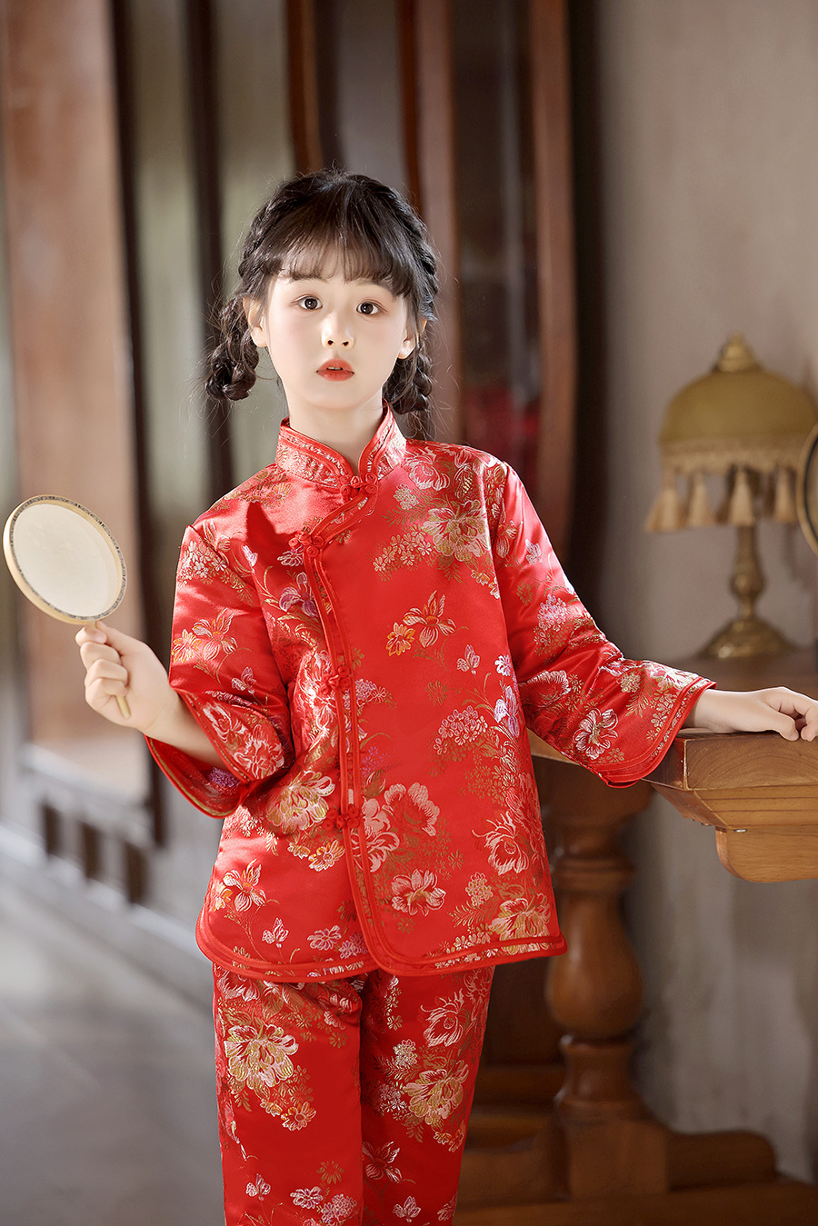 2025 Новый летне-осенний детский костюм Тан в ретро стиле, китайский стиль, топы и брюки для девочек, оптовая продажа, дропшиппинг