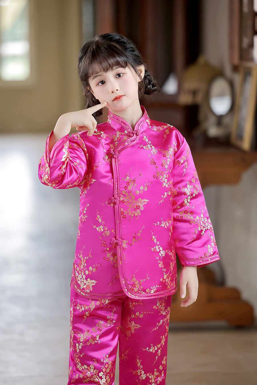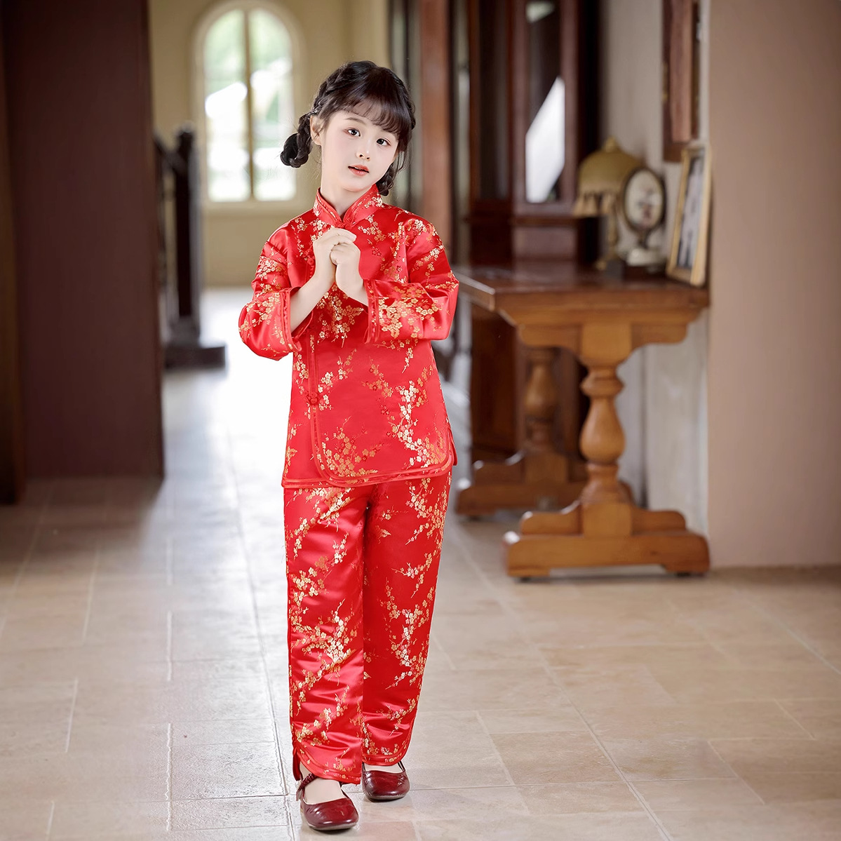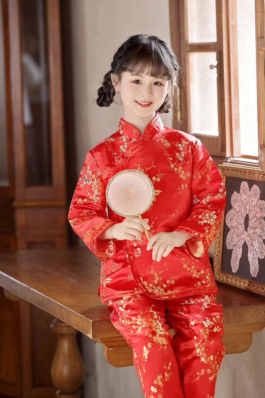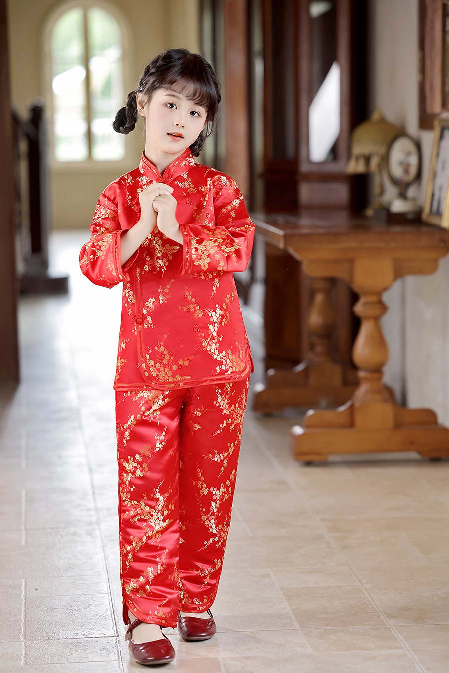 2025 Новый летне-осенний детский костюм Тан в ретро стиле, китайский стиль, топы и брюки для девочек, оптовая продажа, дропшиппинг