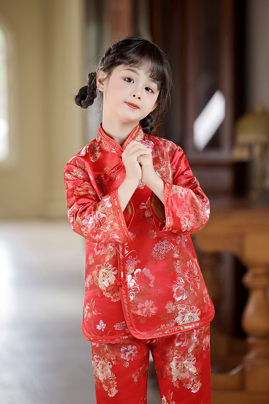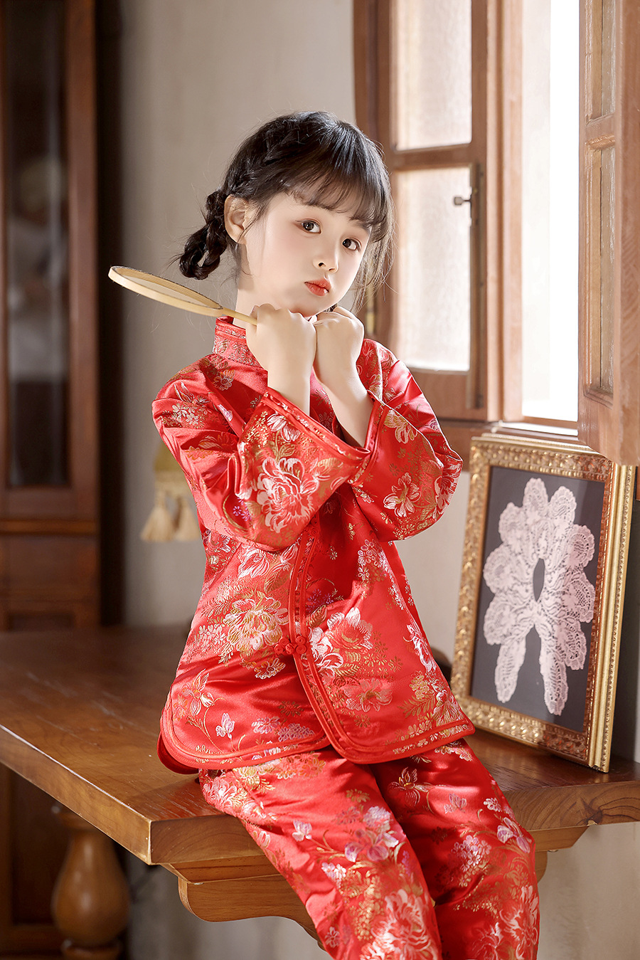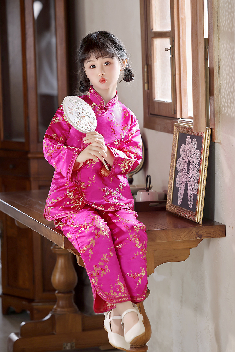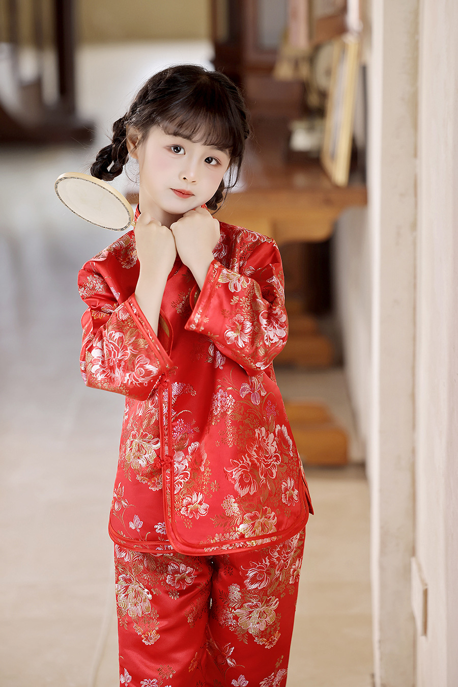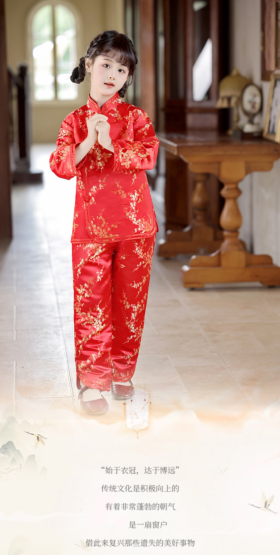 2025 Новый летне-осенний детский костюм Тан в ретро стиле, китайский стиль, топы и брюки для девочек, оптовая продажа, дропшиппинг