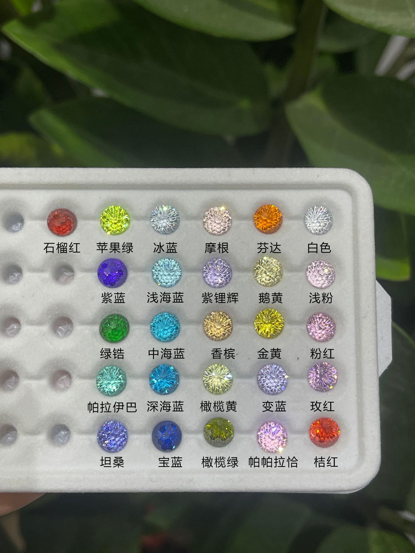 гранатово-красный; яблоко зеленое; ледяной синий; Морган; Фанта; Белый; фиолетовый синий; светло-морской синий; Кунзит; Гусь желтый; светло-розовый; зеленый цирконий; средний морской синий; шампанское; золотой; розовый; Параиба; глубоководное синее; оливково-желтый; покраснеть; розово-красный; Танзания; королевский синий; оливково-зеленый; Падпарадша; оранжевый
