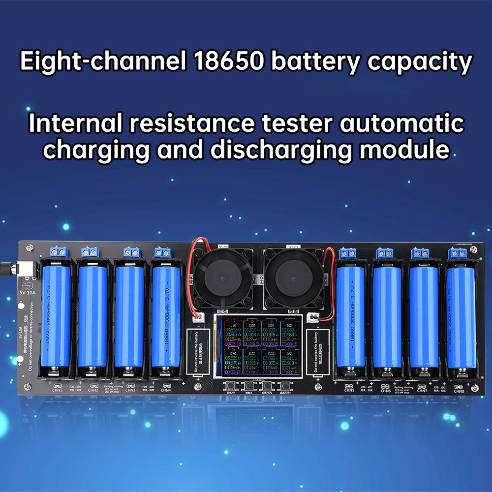 Восьмиканальный детектор емкости и внутреннего сопротивления аккумулятора 18650, автоматический тестер зарядки и разрядки, 2.4inch цветных экрана, порт постоянного тока