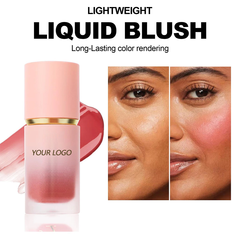 OEM-розовые румяна, увлажняющие и легко окрашиваемые жидкие румяна для осветления тона кожи, водонепроницаемая обработка OEM, индивидуальная настройка макияжа OEM