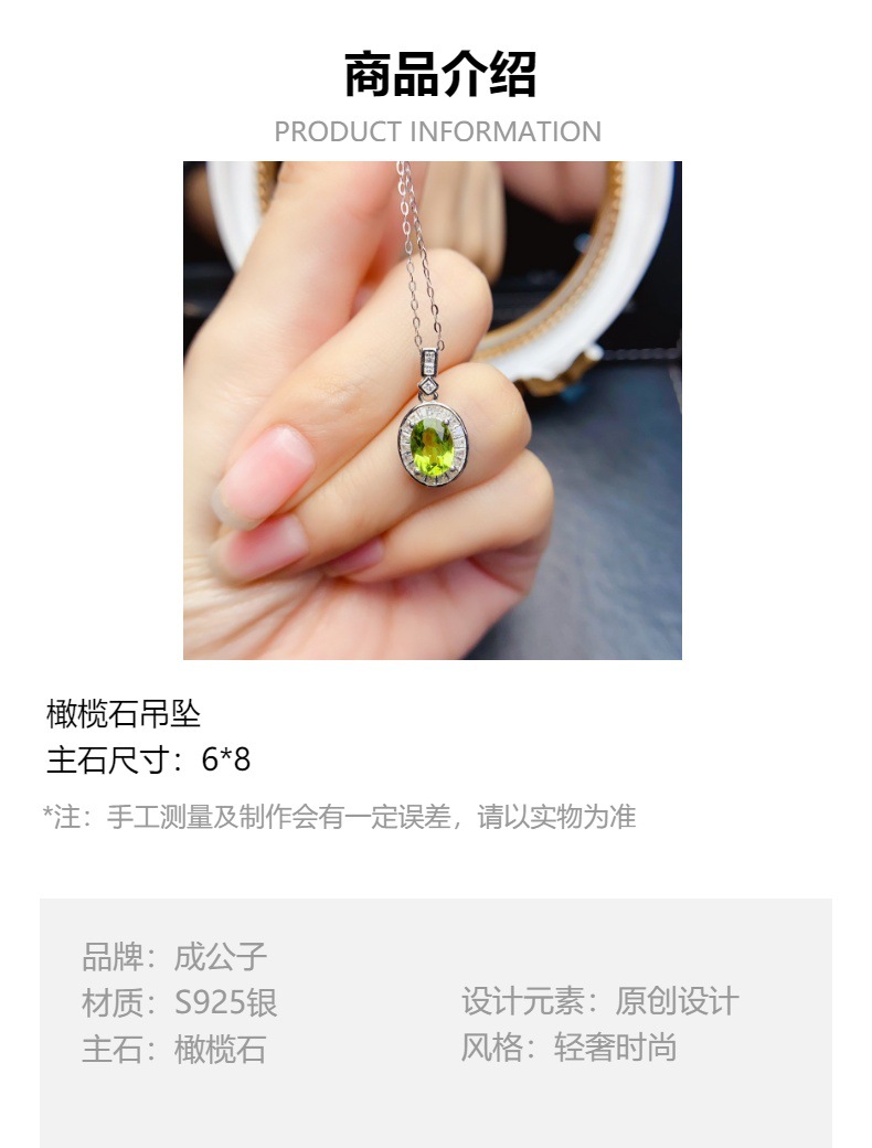 Оптовая продажа популярных подвесок из натурального перидота S925 с инкрустацией основного камня 6*8, горячие продажи в Европе и Америке, дропшиппинг.