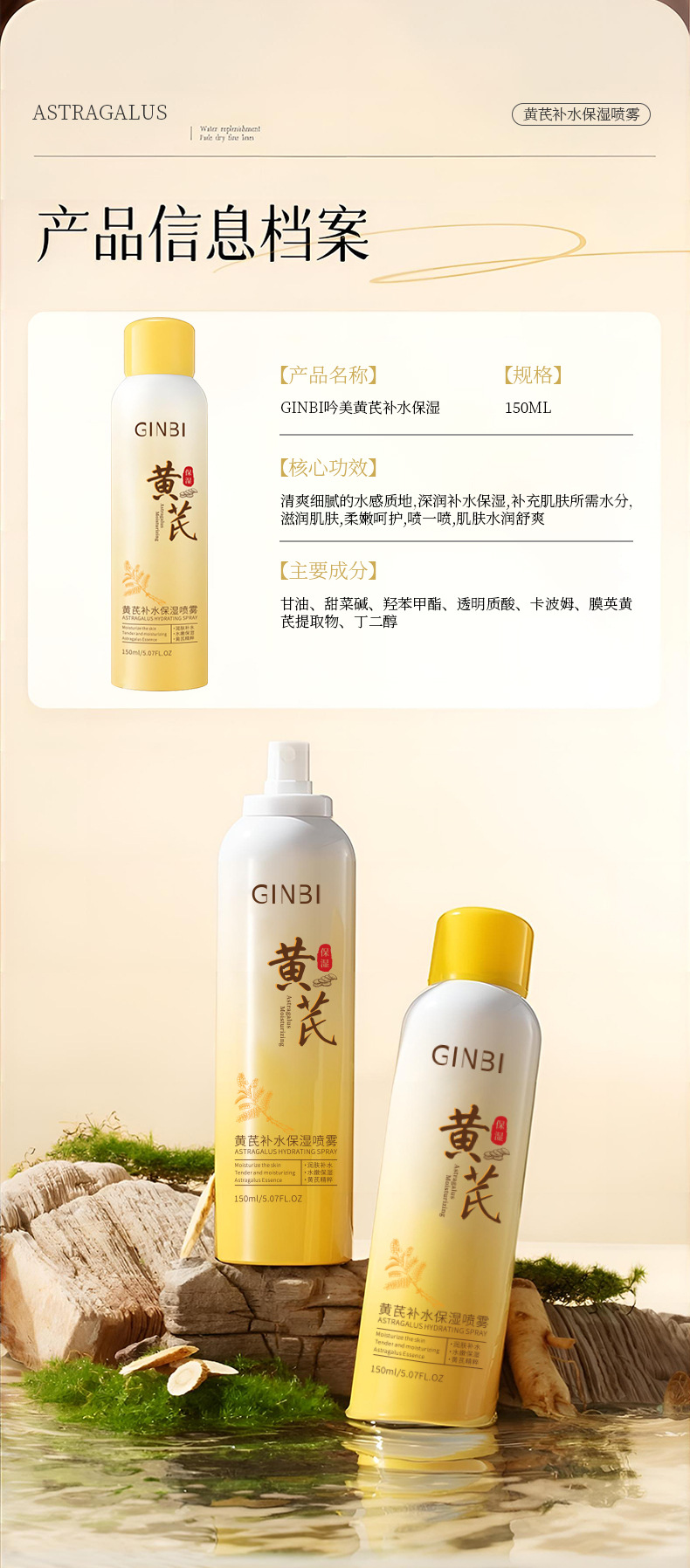Yinmei Astragalus Увлажняющий и восстанавливающий спрей-лосьон Увлажняющий и увлажняющий перед макияжем Увлажняющий освежающий нежирный тоник