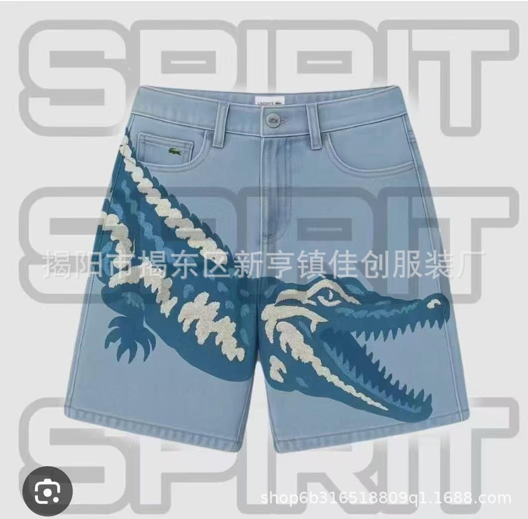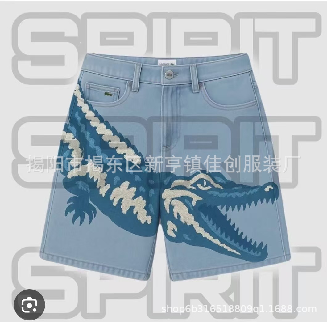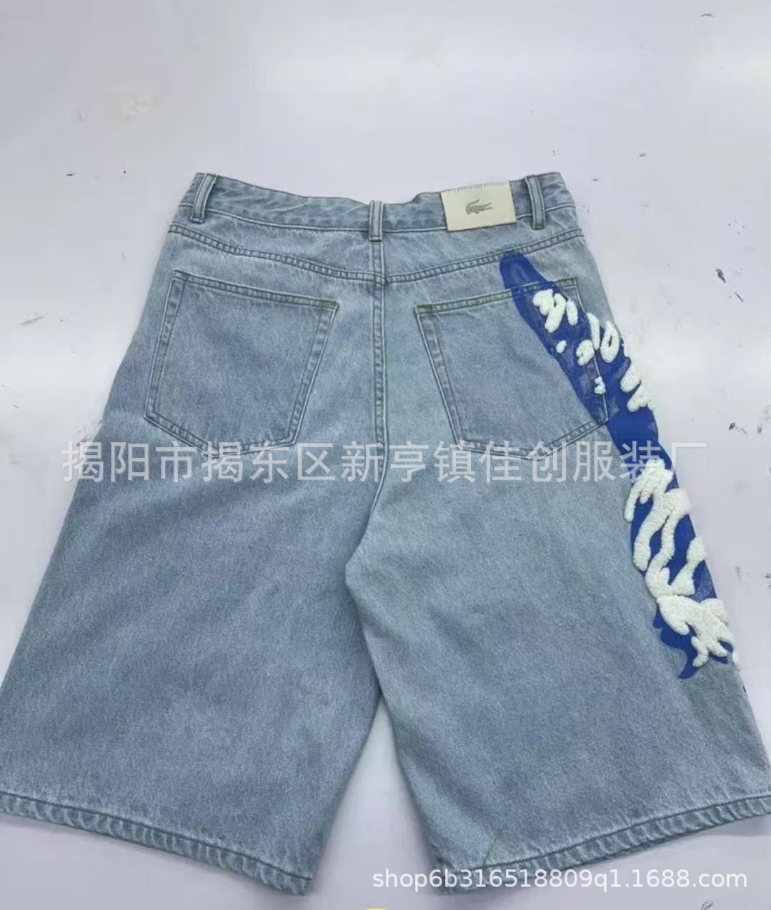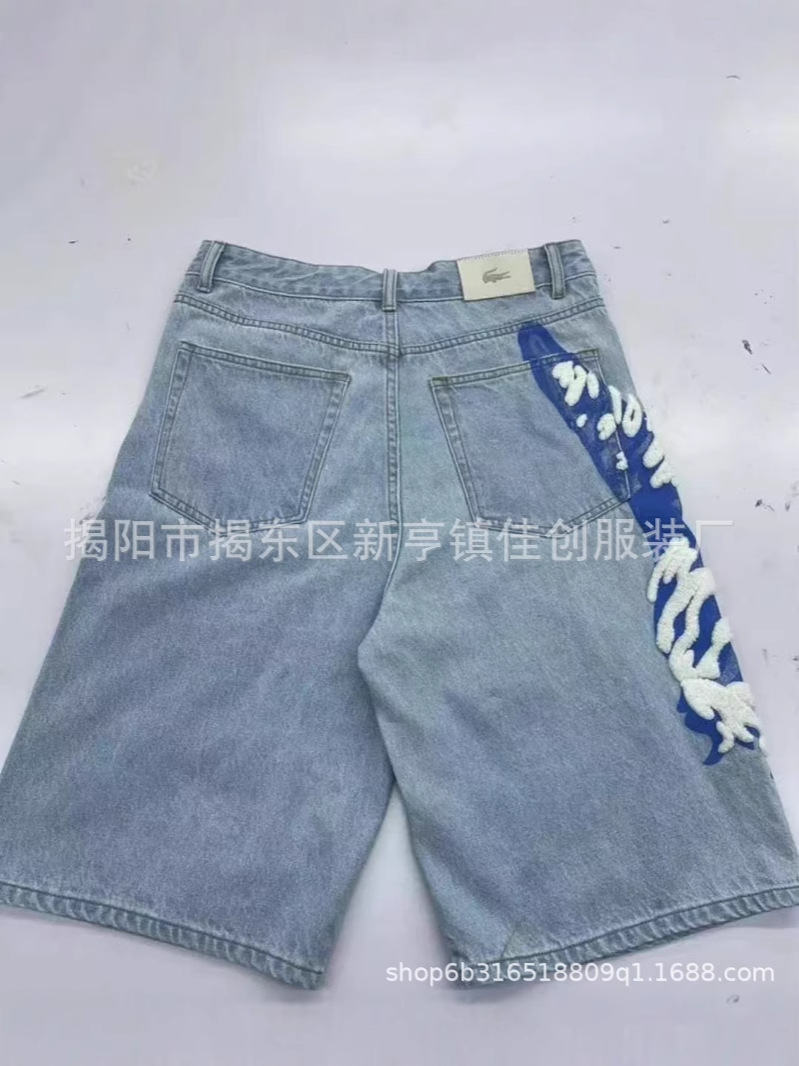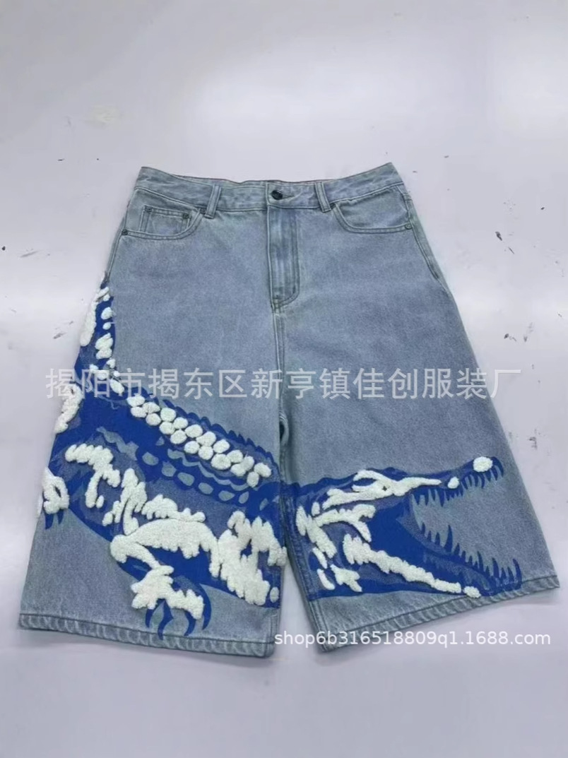 Летняя новая американская стирка моды индивидуальность трендовый узор принт джинсовые шорты свободные повседневные прямые брюки