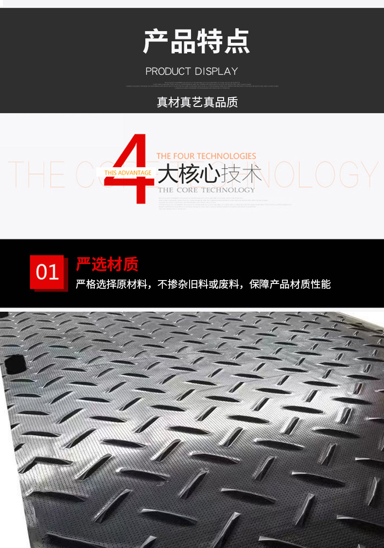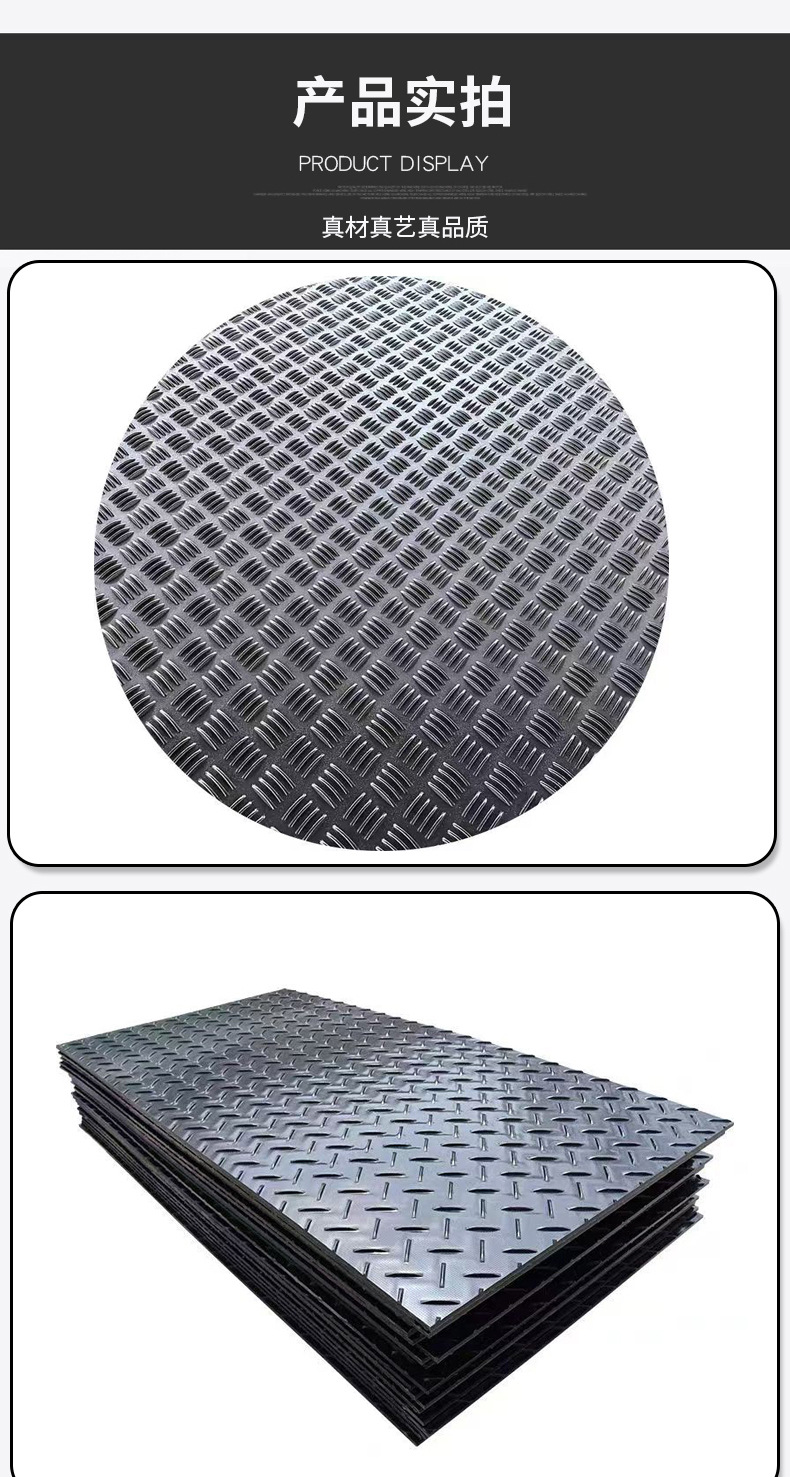 Противоскользящая текстурированная дорожная плита с текстурированным покрытием для временных грязных дорог на строительных площадках, устойчивая к давлению, несущая нагрузку, полиэтиленовая дорожная плитка для укладки.