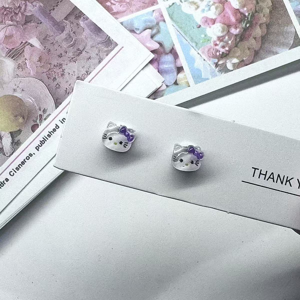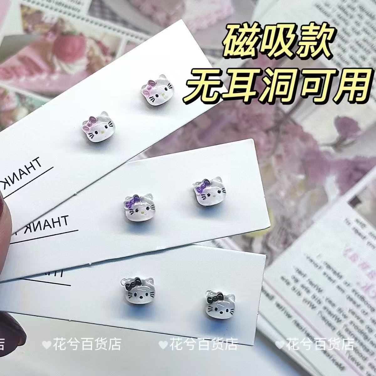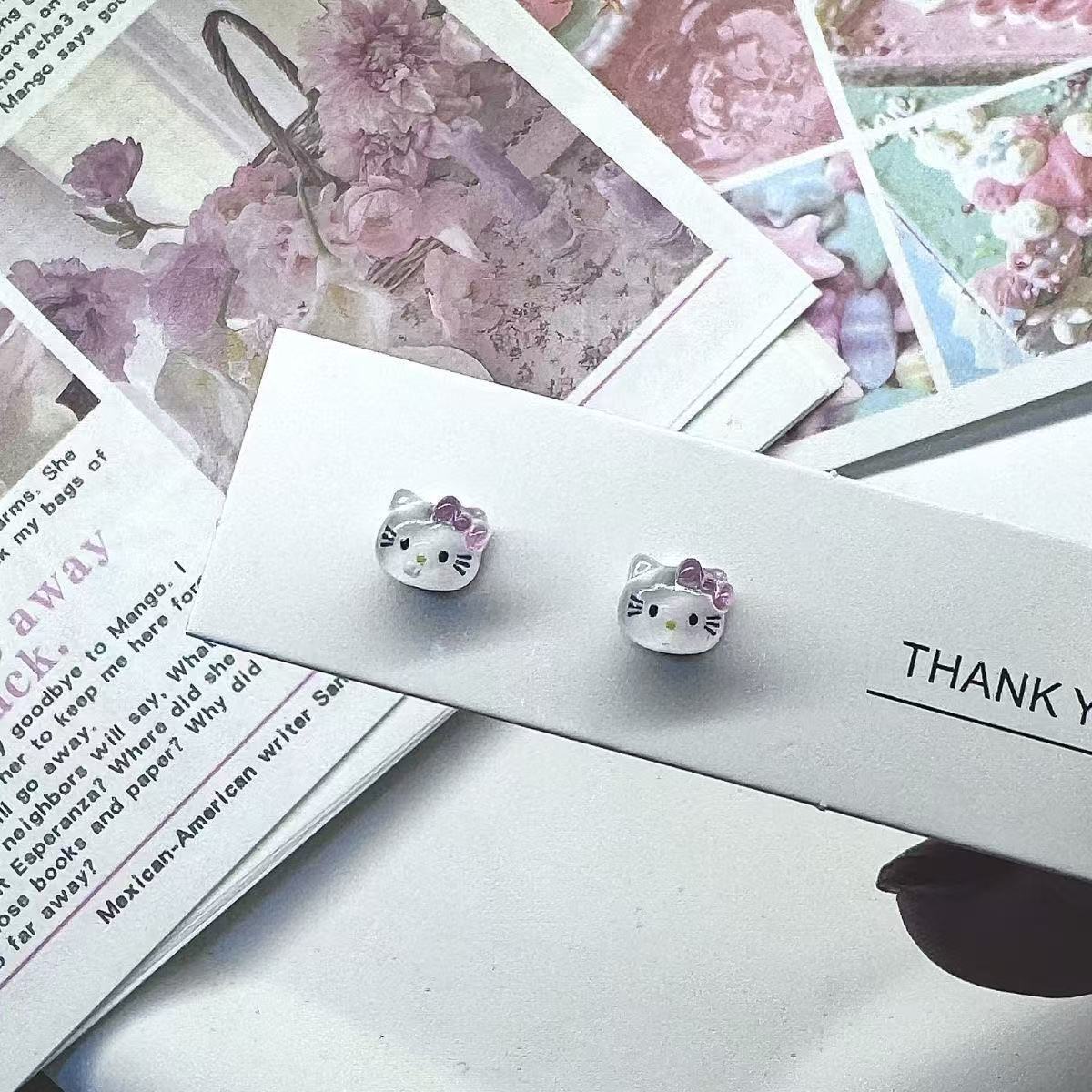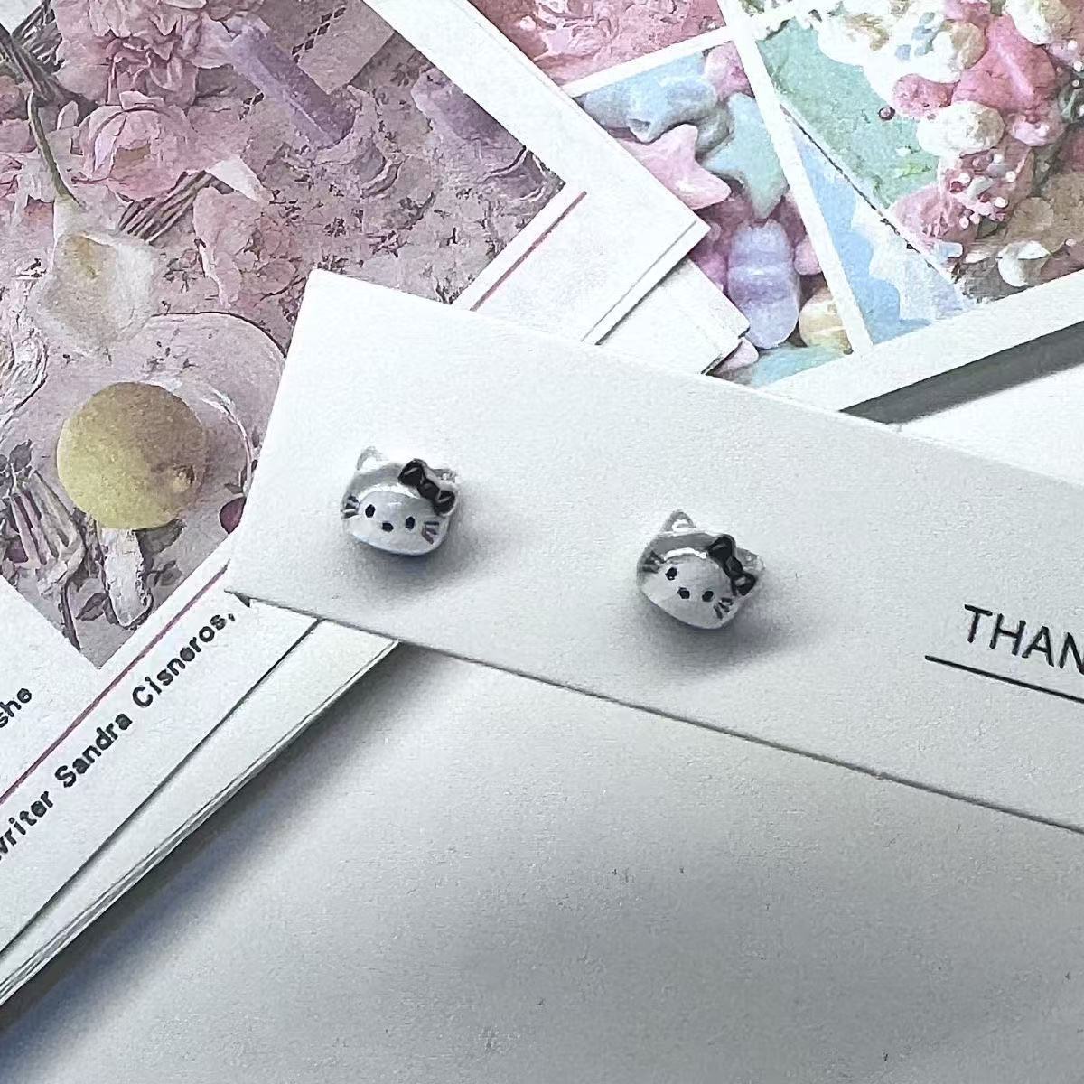Женские серьги-бантики с рисунком KT Cat без перфорации, милые, милые, маленькие, изысканные и персонализированные зажимы для ушей, противоаллергические серьги