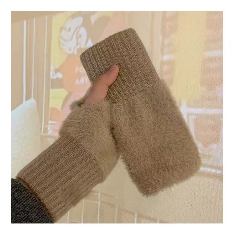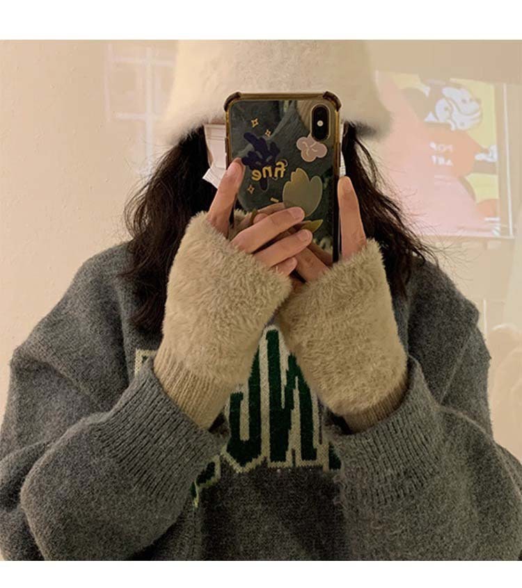 Новые плюшевые перчатки с половиной пальца в стиле ins, красивые теплые осенние и зимние носки принцессы, сенсорный экран для студентов в классе