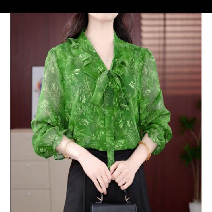 Летняя шифоновая блузка для мам среднего и пожилого возраста 2025, новая модная стильная блузка для богатых дам с топом на ленте