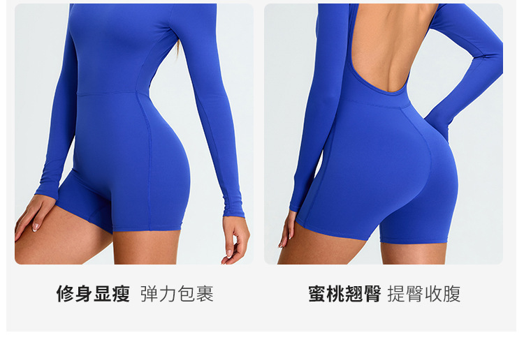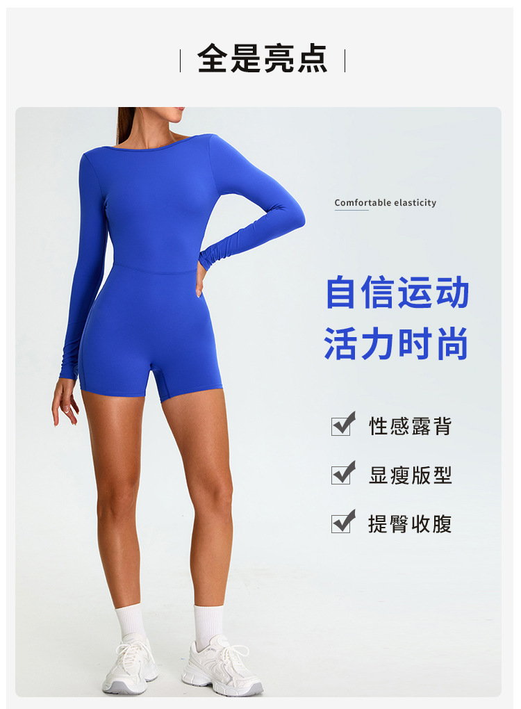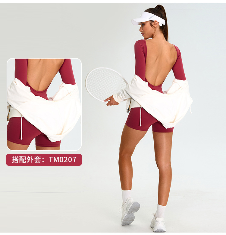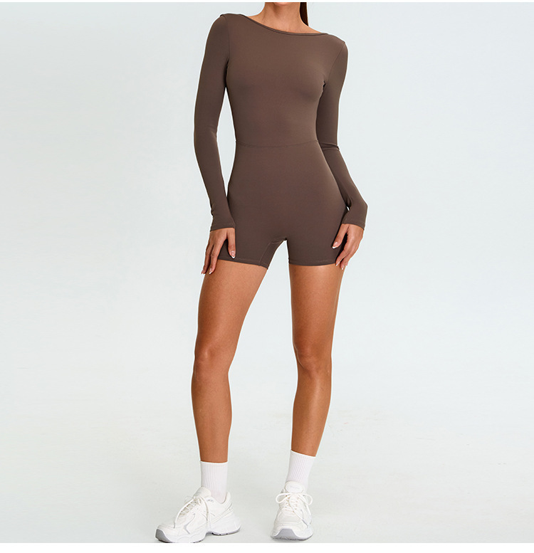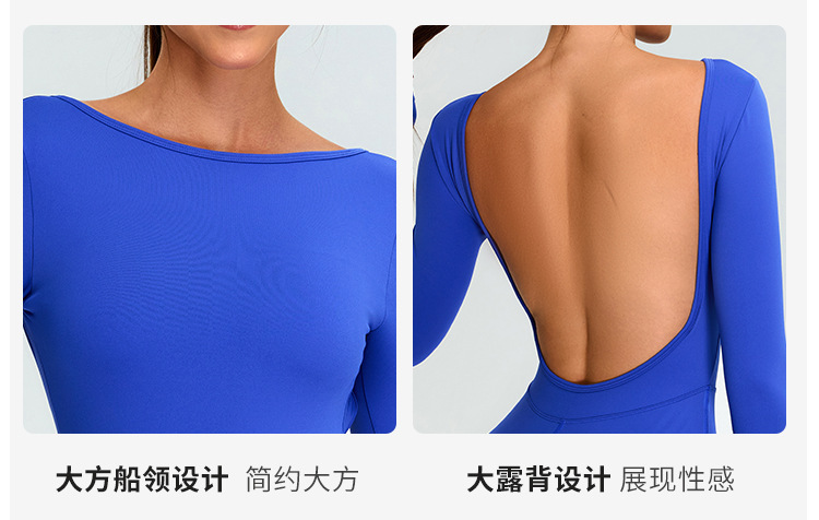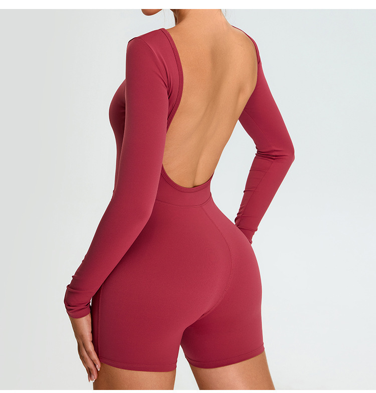 Нюдовый дышащий длиннорукавный спортивный купальник для йоги, женственный крой с вырезом на спине, облегающий спортивный купальник для фитнеса
