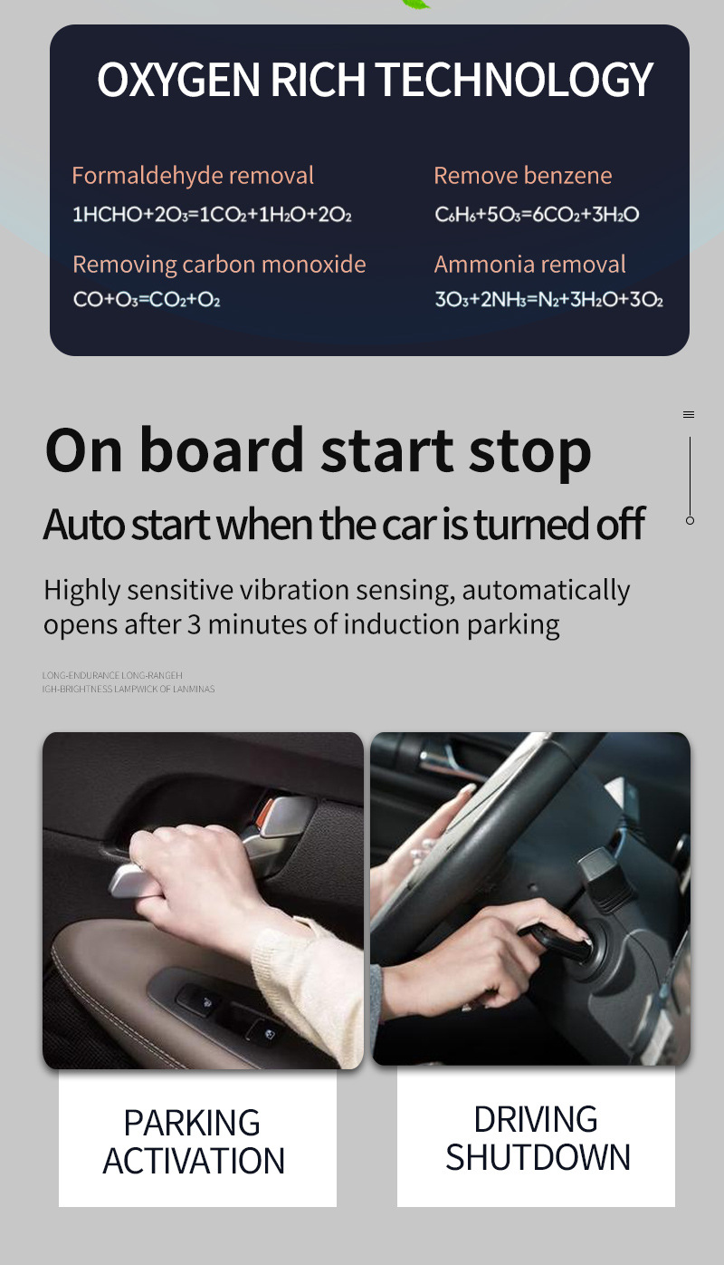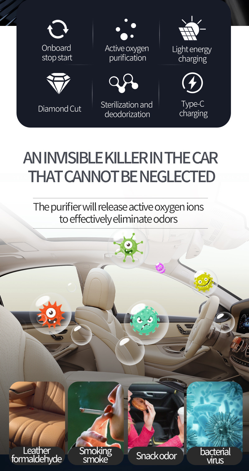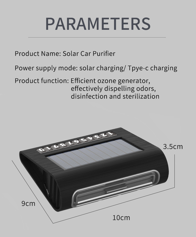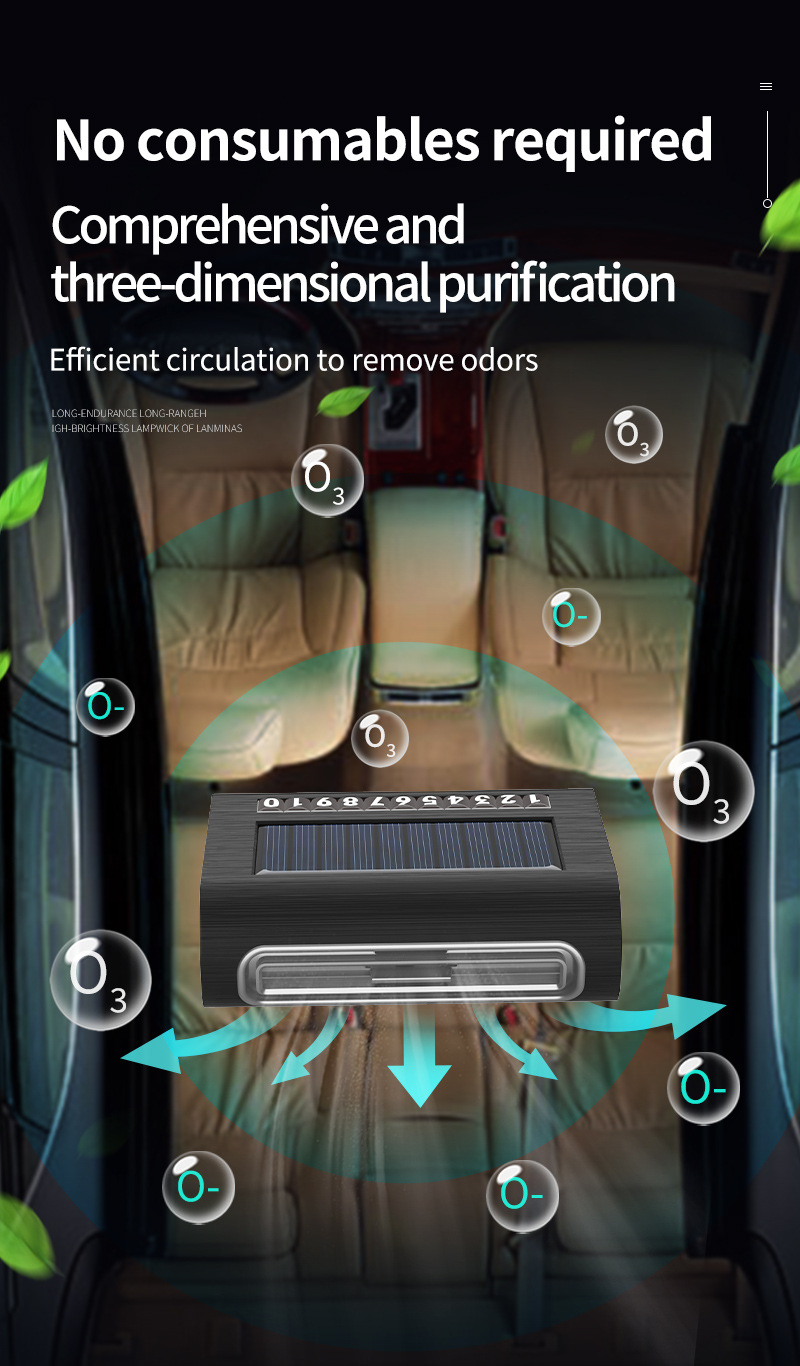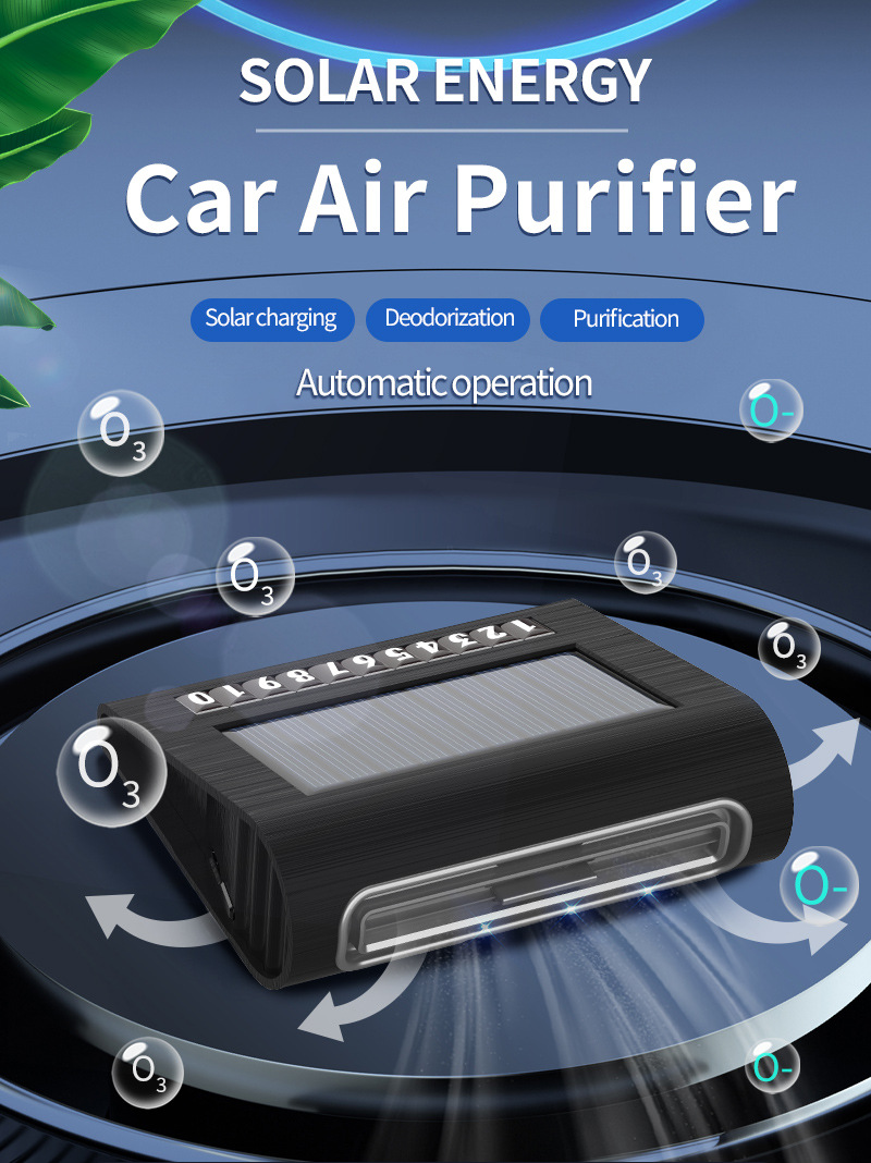 Солнечный автомобильный очиститель воздуха автоматически запускается, паркуется, начинает зарядку, имеет длительное время автономной работы и не потребляет расходные материалы. Отрицательные ионы