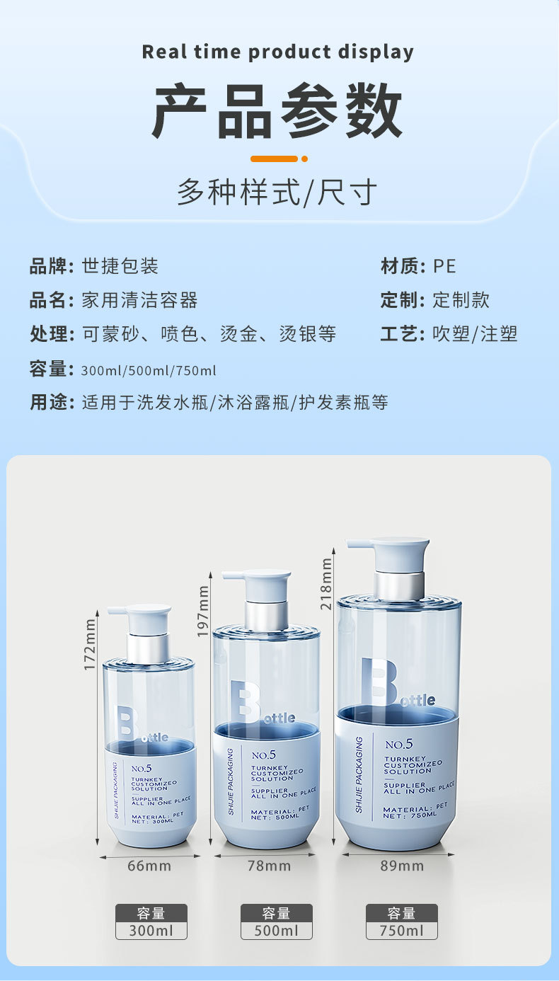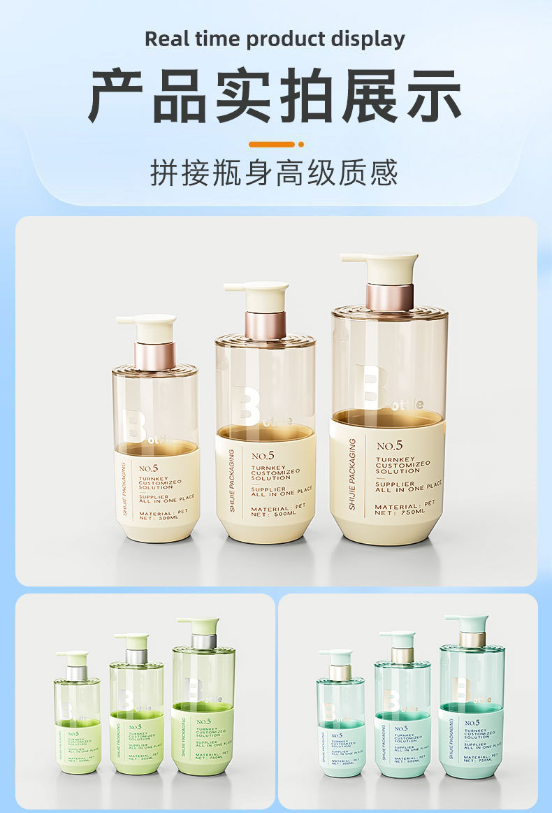 Высококачественная прозрачная бутылка для шампуня, кондиционера, геля для душа, упаковочный материал, индивидуальная гальваническая головка насоса, бутылка большой емкости 750 мл