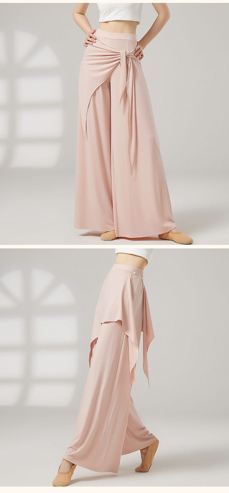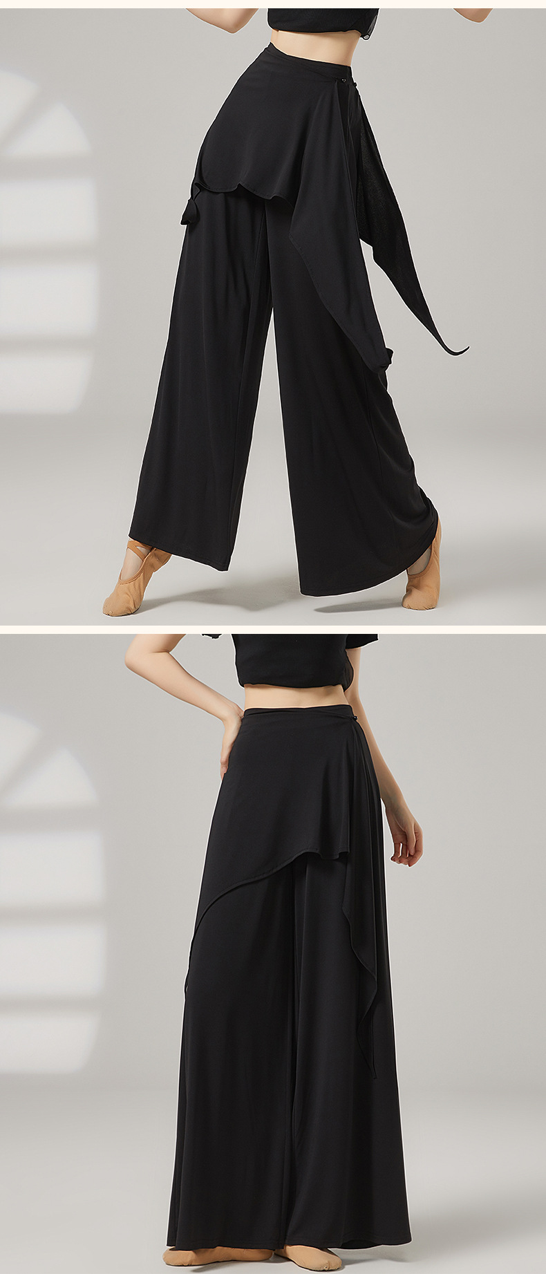 Широкие брюки для танцев с юбкой из искусственного материала, классические танцевальные брюки, длинные брюки с драпировкой, костюм для тренировок по китайскому танцу.