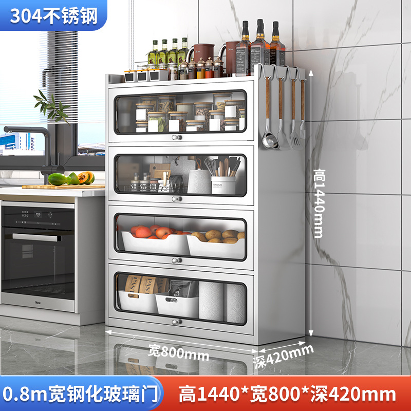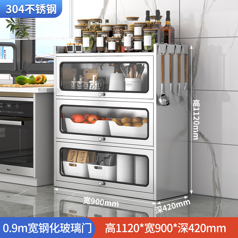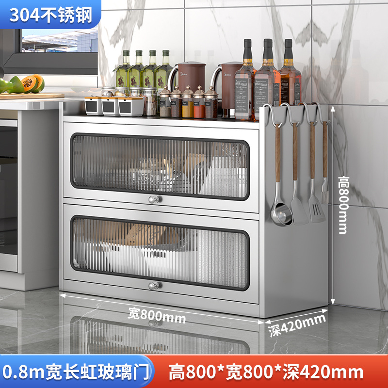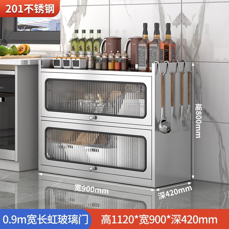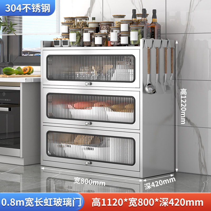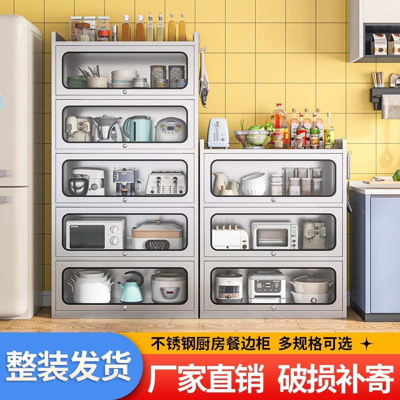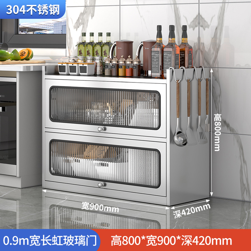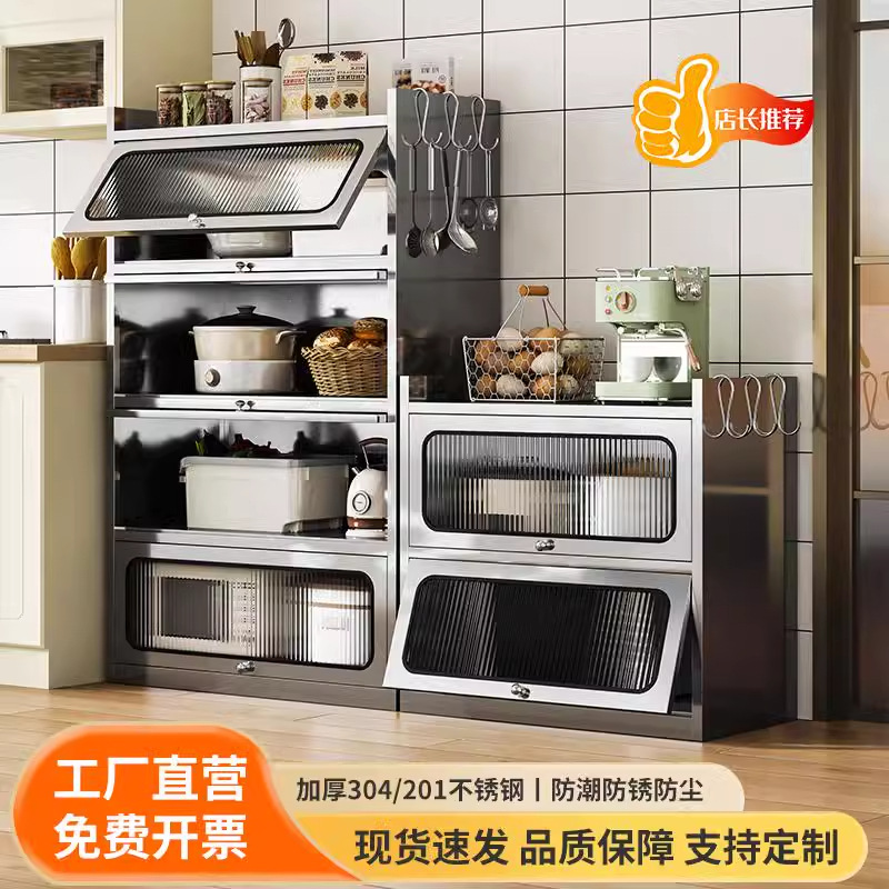 Бытовой буфет из нержавеющей стали 304, кухонный утолщенный шкаф для хранения, шкаф с откидной дверью, обеденный шкаф, кварцевый камень, провинция Цзянсу