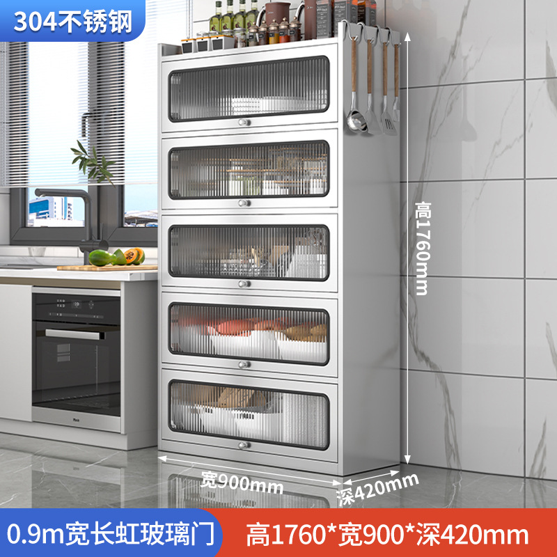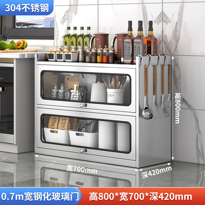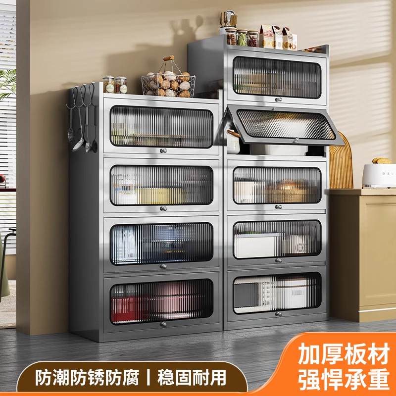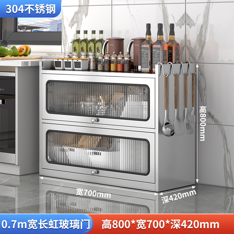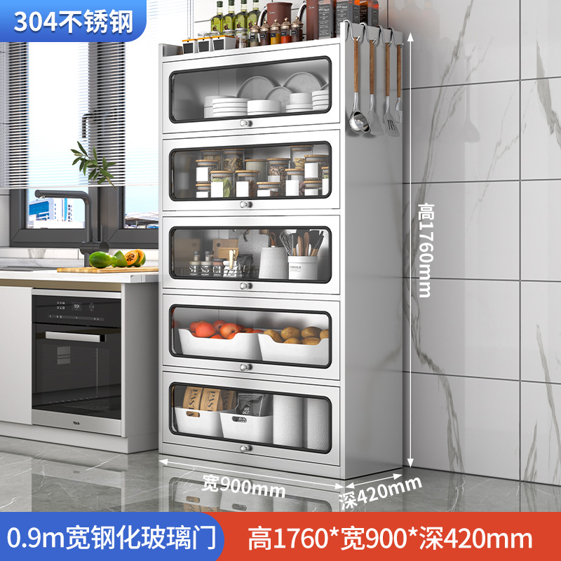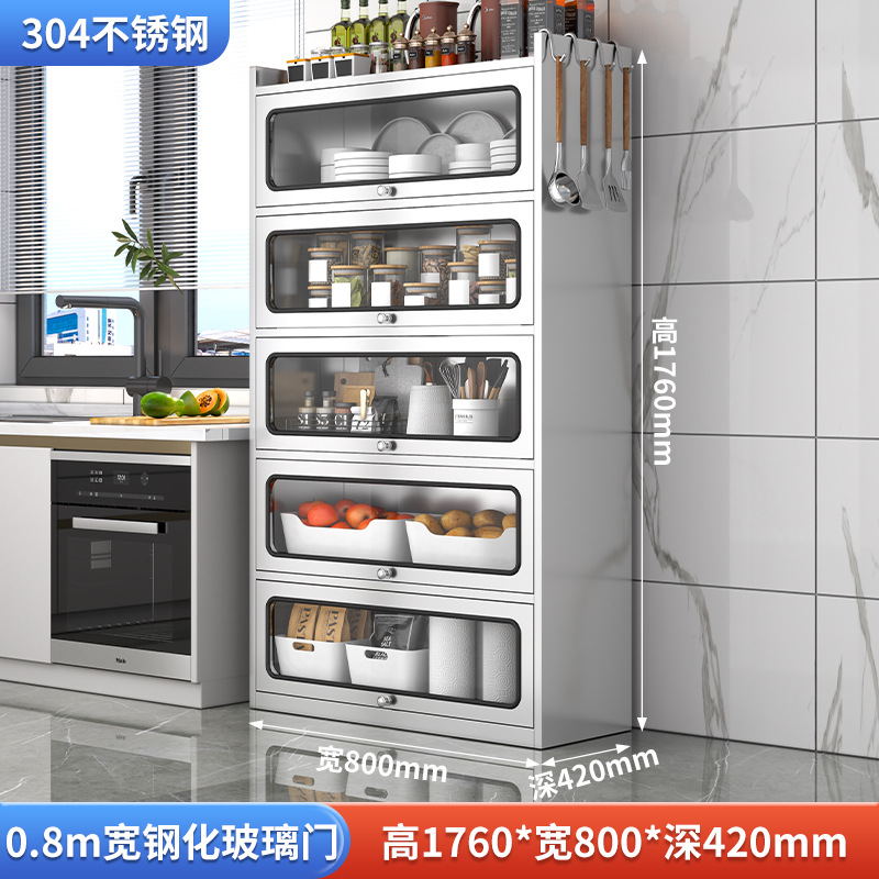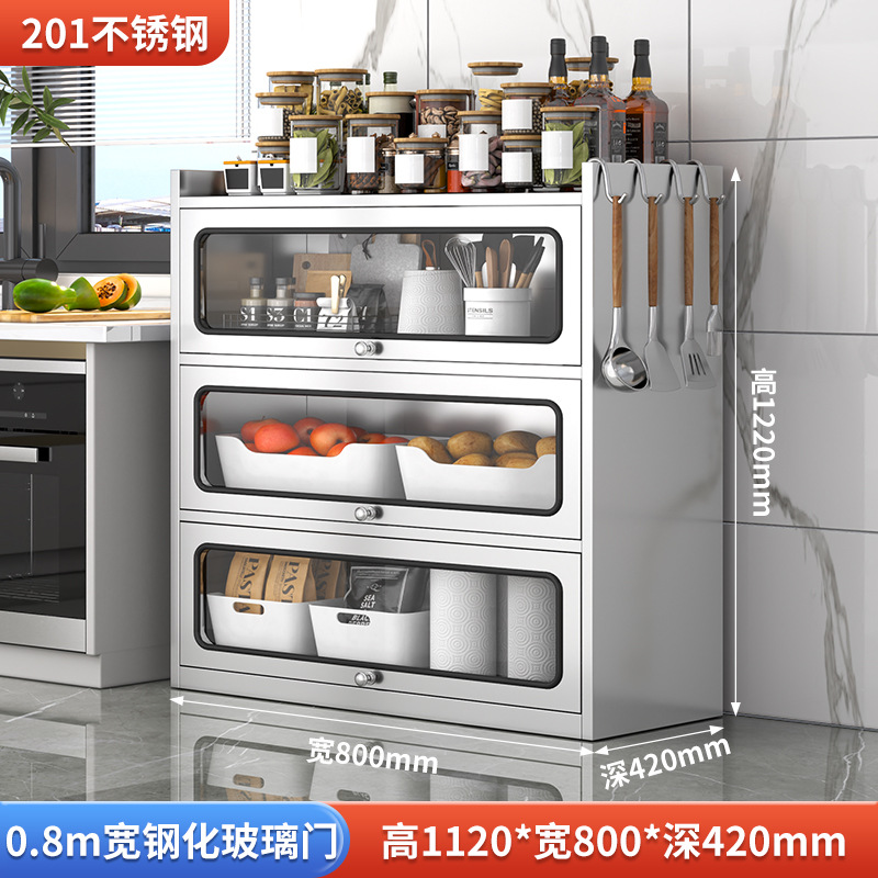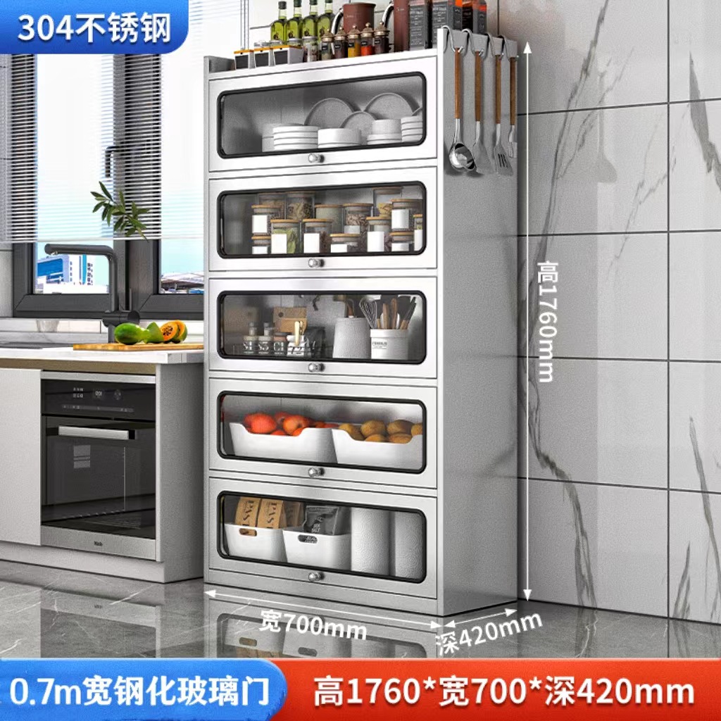Бытовой буфет из нержавеющей стали 304, кухонный утолщенный шкаф для хранения, шкаф с откидной дверью, обеденный шкаф, кварцевый камень, провинция Цзянсу