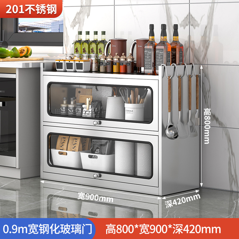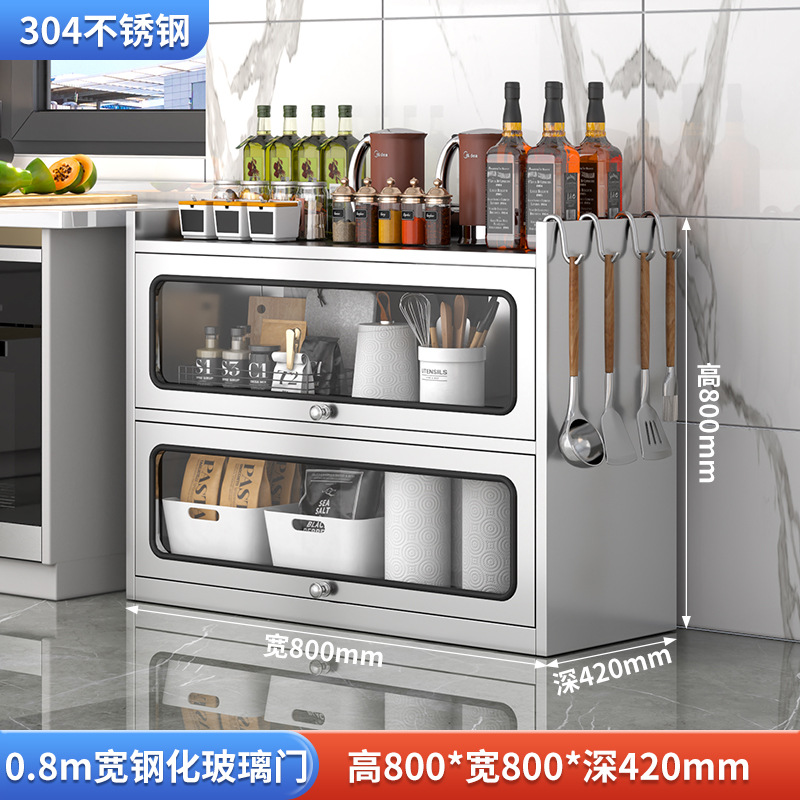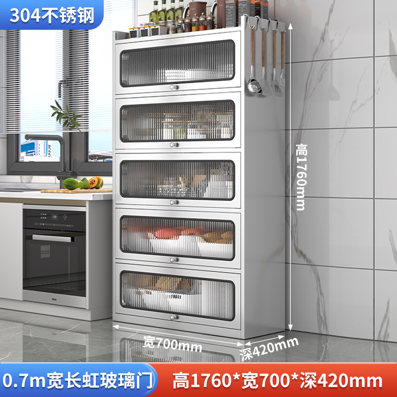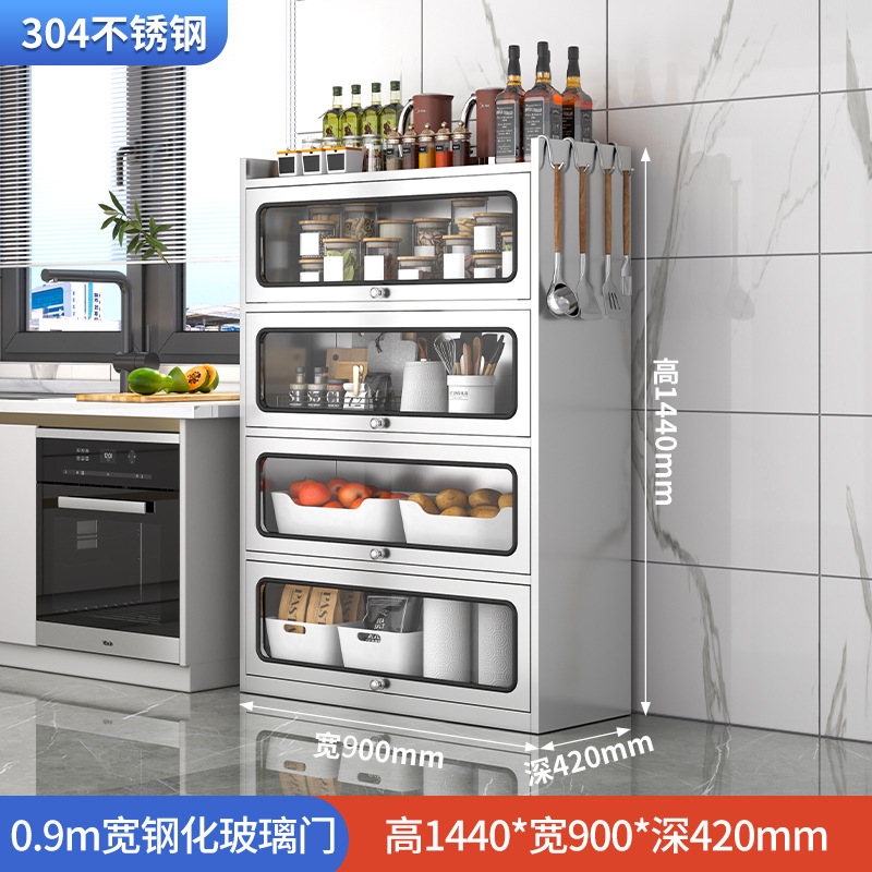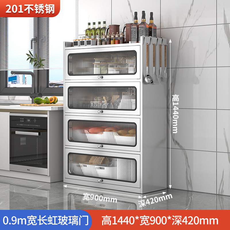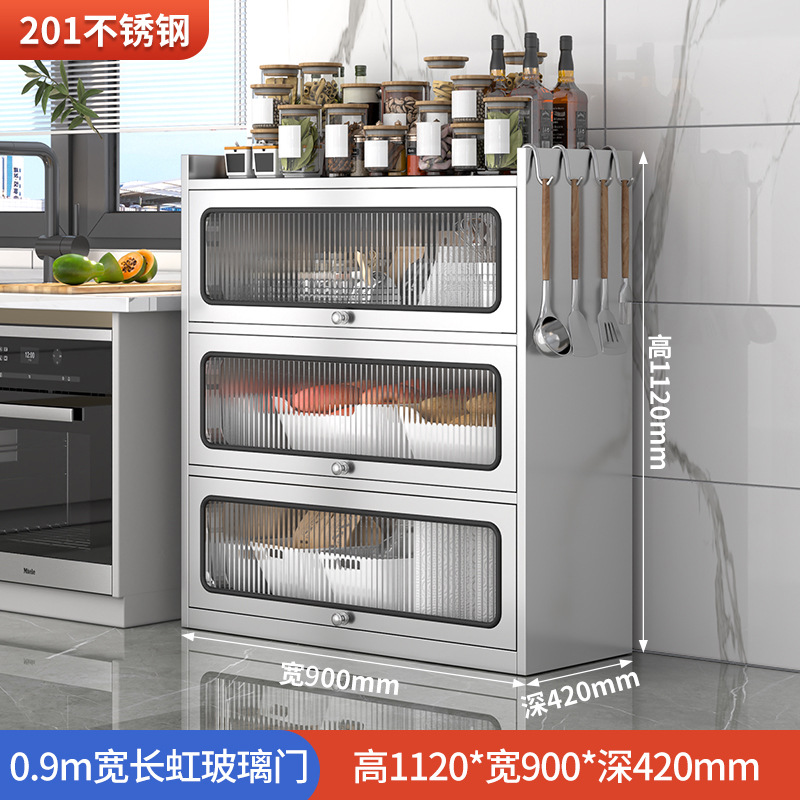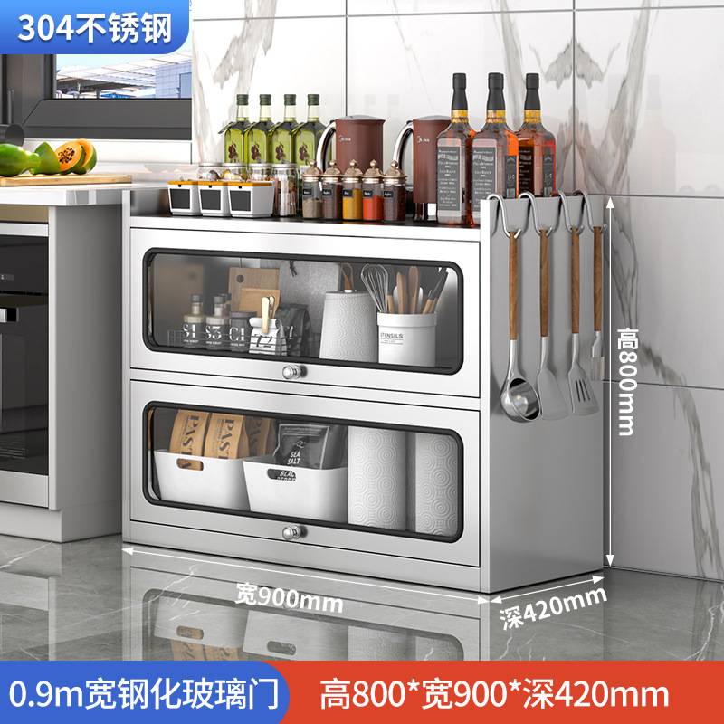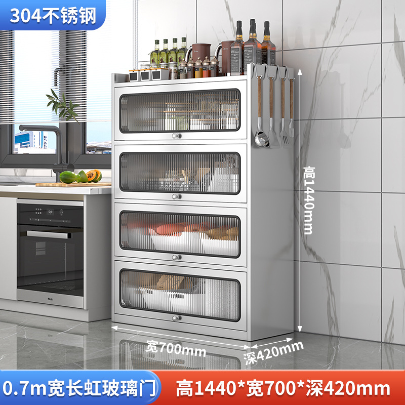 Бытовой буфет из нержавеющей стали 304, кухонный утолщенный шкаф для хранения, шкаф с откидной дверью, обеденный шкаф, кварцевый камень, провинция Цзянсу