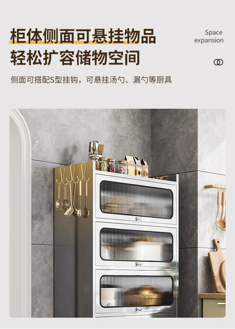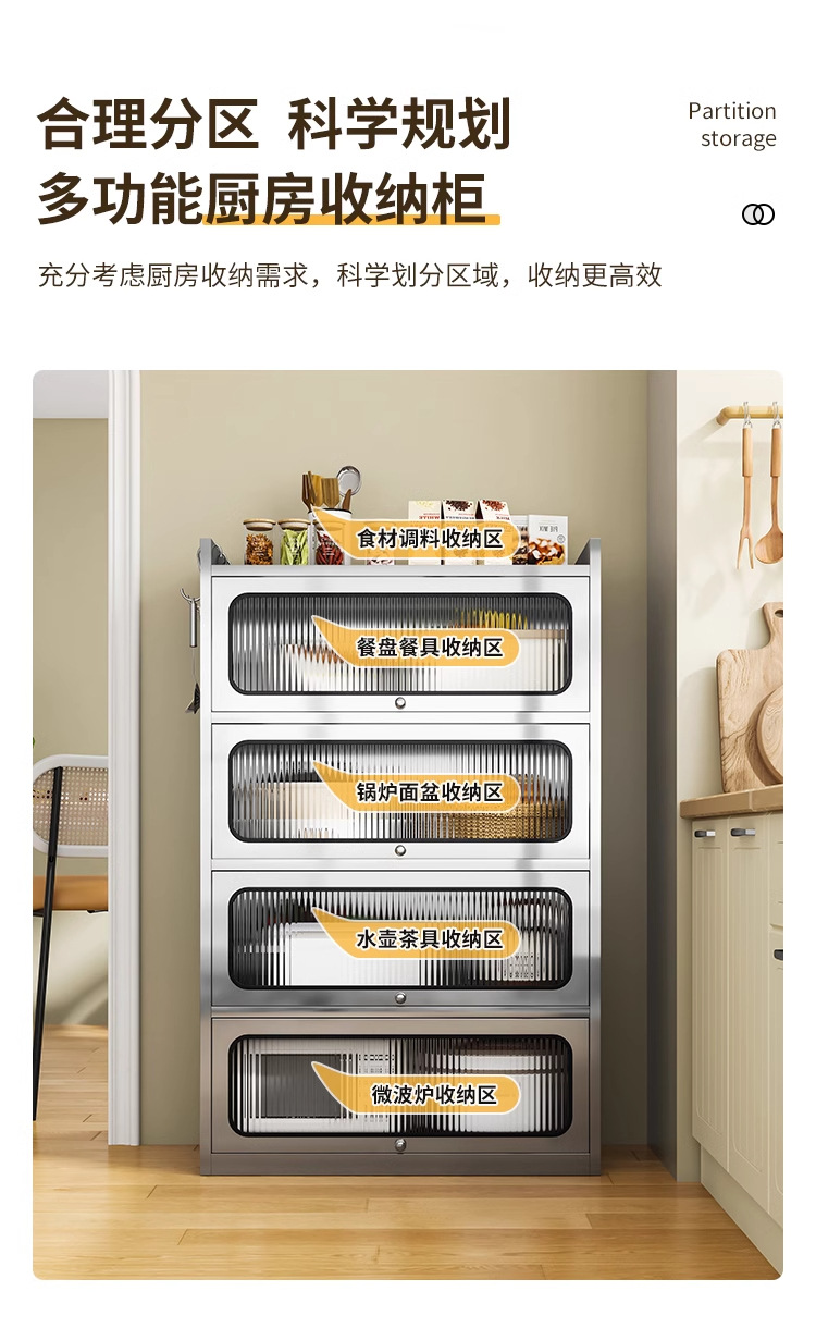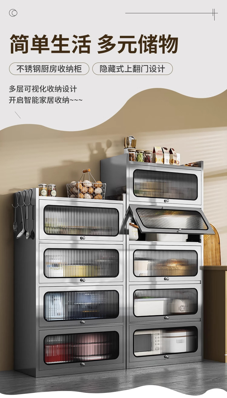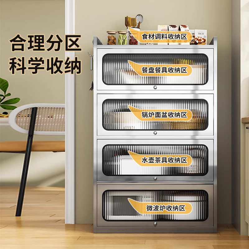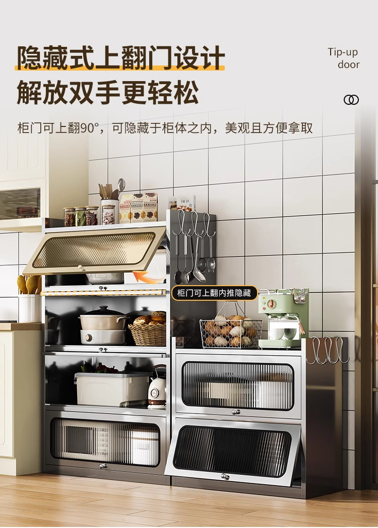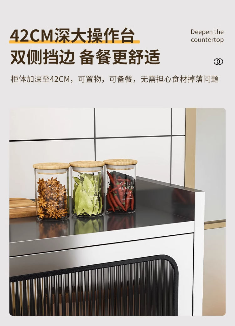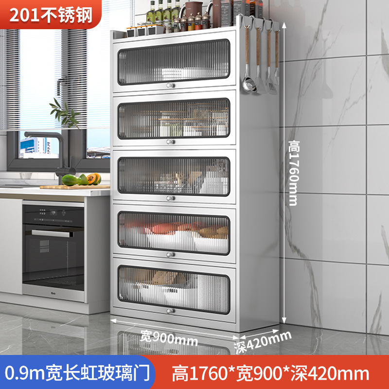 Бытовой буфет из нержавеющей стали 304, кухонный утолщенный шкаф для хранения, шкаф с откидной дверью, обеденный шкаф, кварцевый камень, провинция Цзянсу