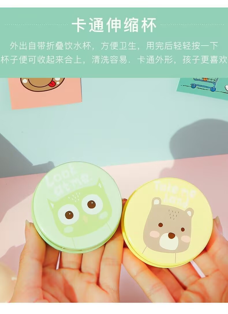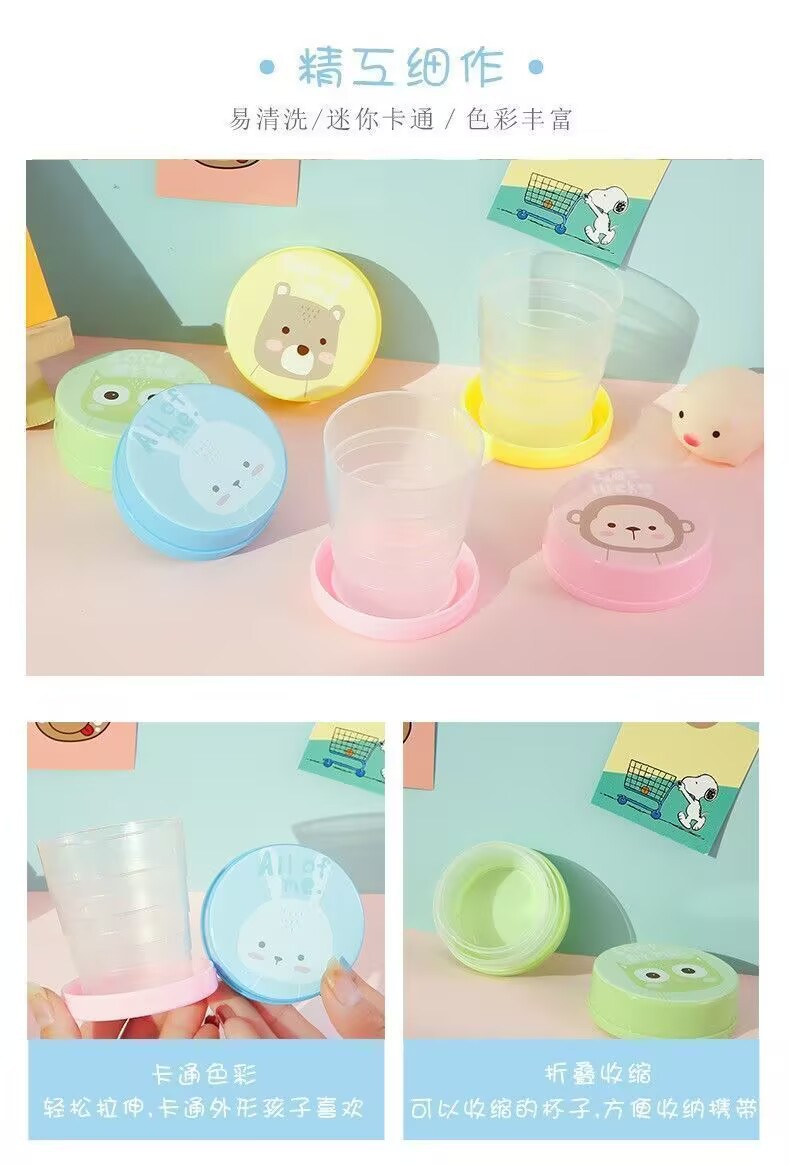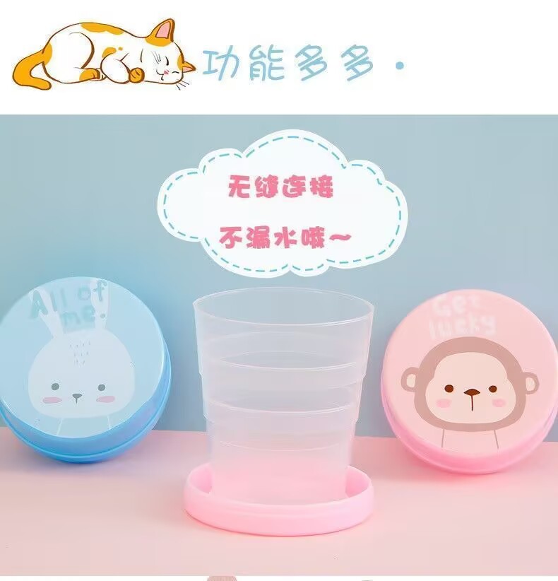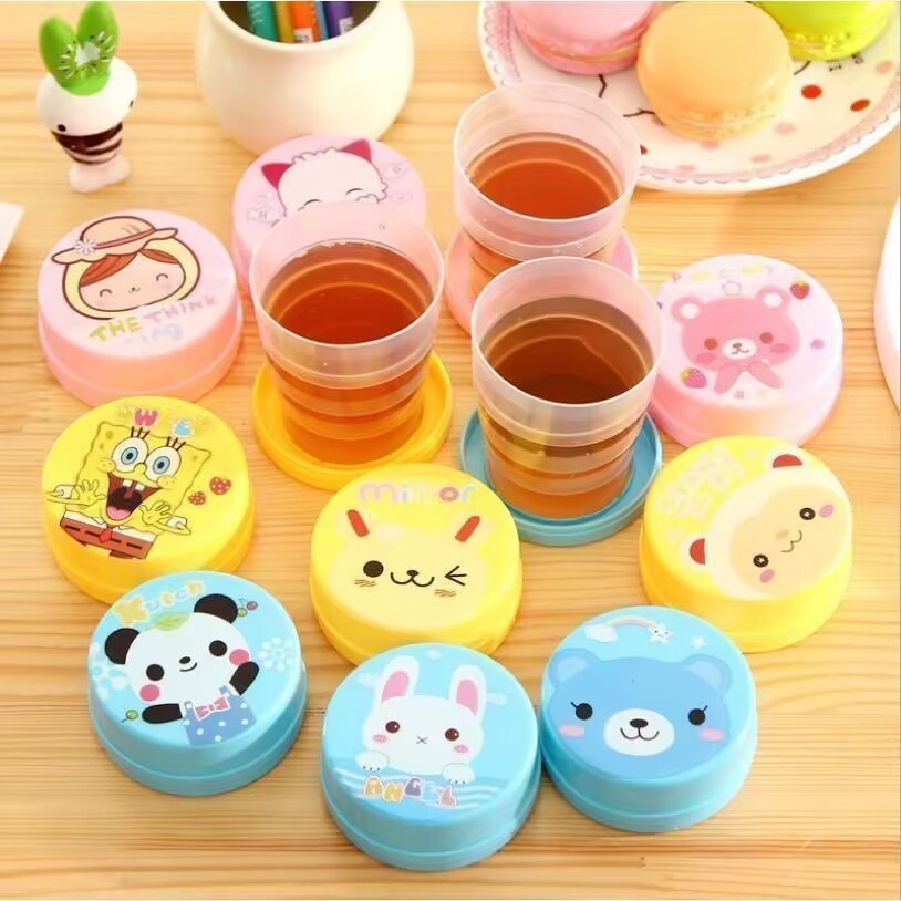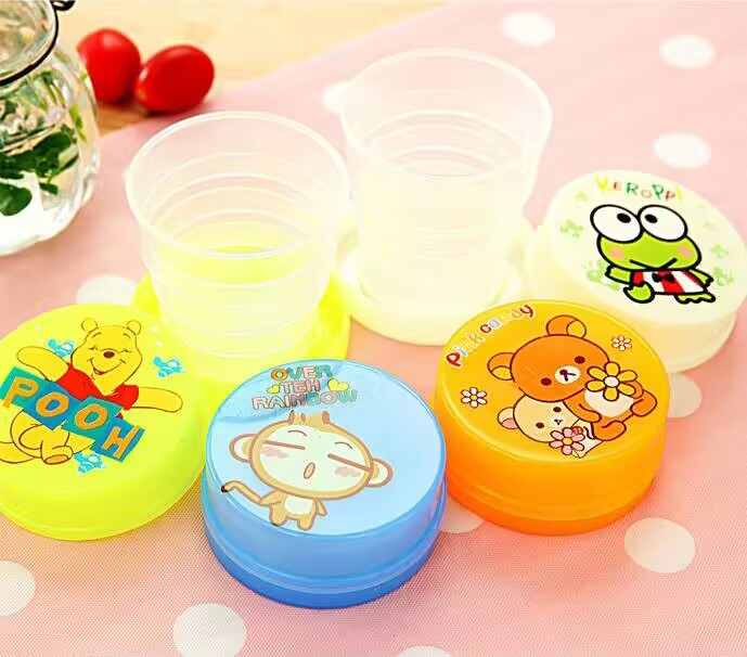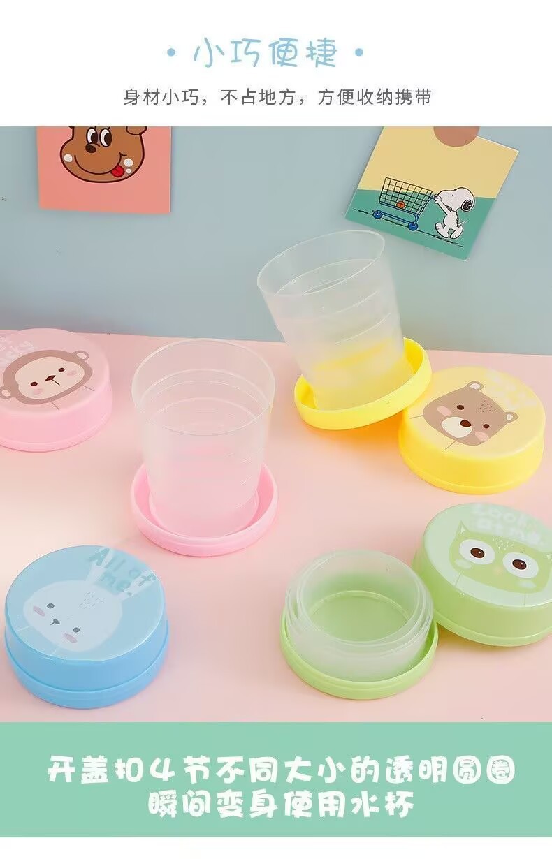 Складная чашка для воды, компактная портативная чашка для улицы, чашка для полоскания рта, телескопическая чашка, дорожная чашка для хранения мультфильмов, компрессионная чашка