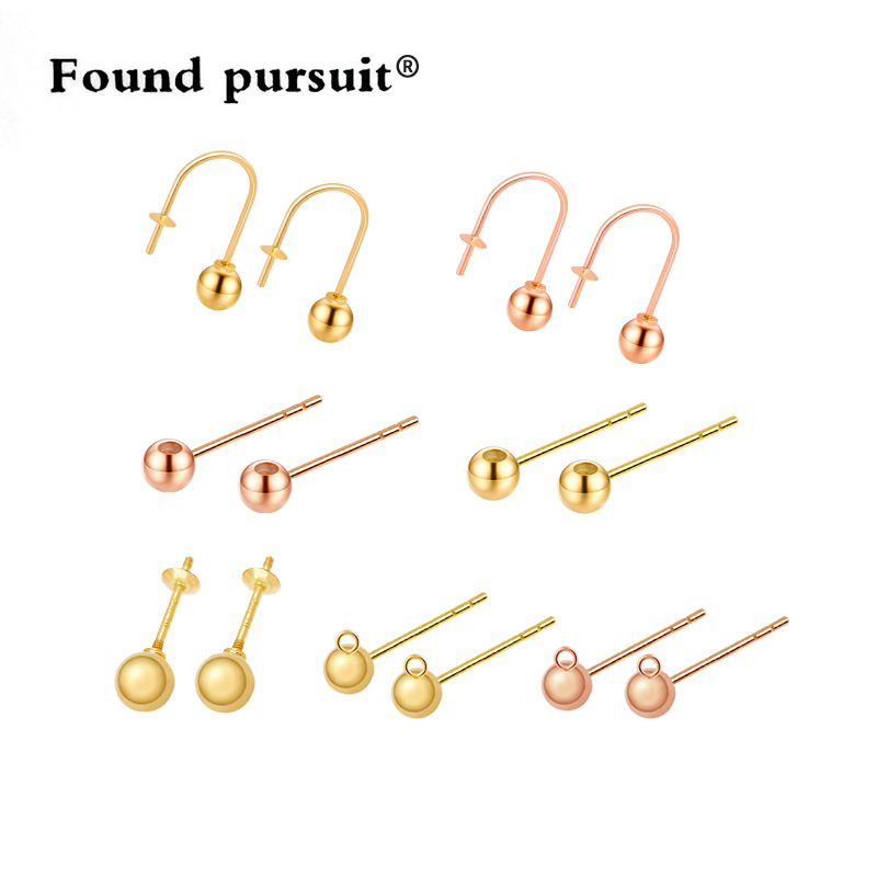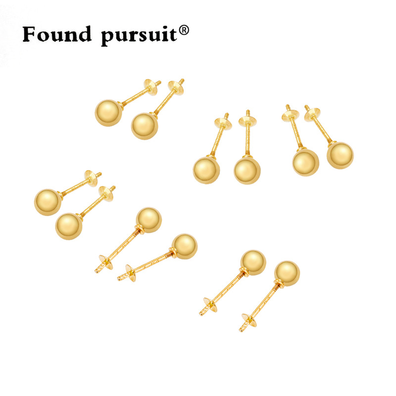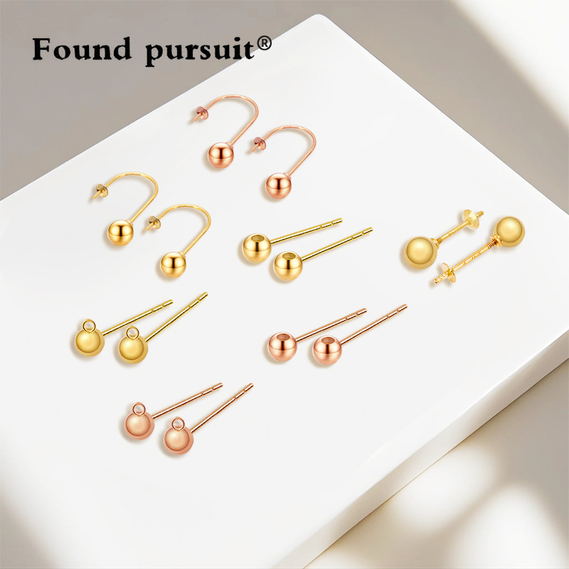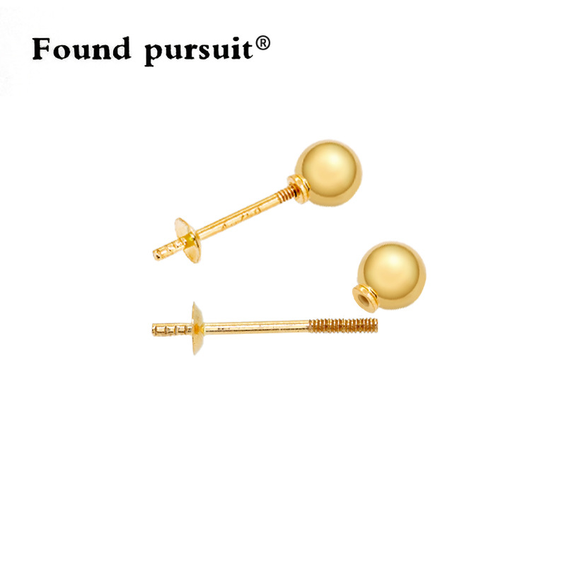 Серьги-гвоздики из чистого золота 18 карат с волнистым дизайном, с жемчугом и нефритом, круглые, аксессуары для серег, крючки для серег, DIY, серебро 750 пробы, серьги-гвоздики с волнистым дизайном