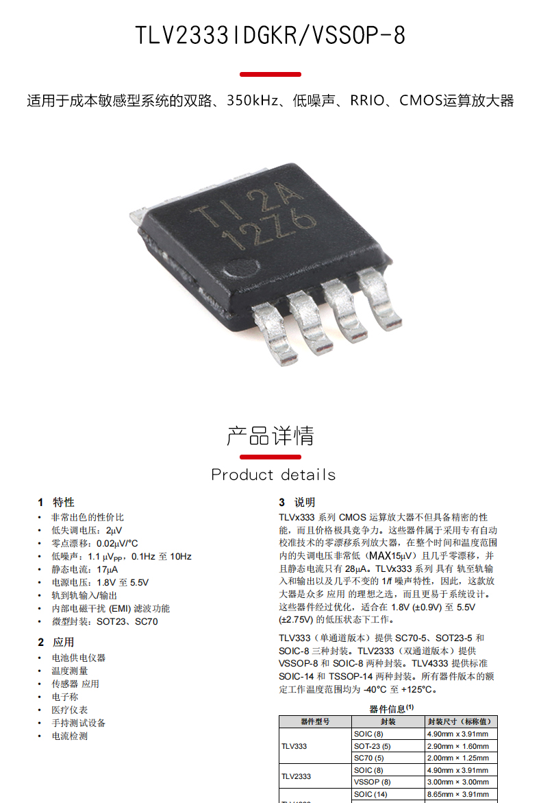 Оригинальный TLV2333IDGKR VSSOP-8 двухсторонний операционный усилитель для чувствительных к стоимости систем