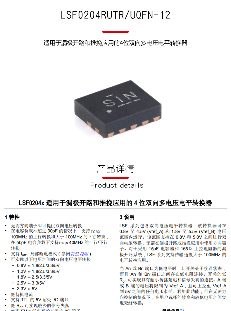 Оригинальный UQFN-12 LSF0204RUTR подходит для 4-разрядного двухстороннего многонапряжного преобразователя с открытым стоком