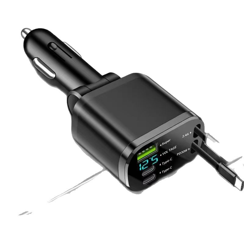 Новое автомобильное зарядное устройство поставляется с телескопической линией и двумя цифрами QC3.0 быстрая зарядка для Apple Huawei