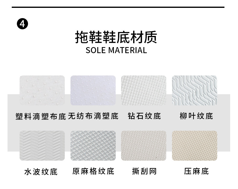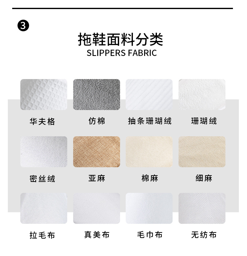 Плюш из прессованной конопли с белой кромкой толщиной 4 мм (матовая серия); Плюш с прессованным краем эфедры толщиной 4 мм (серия плюш); 5 мм водная рябь серая (нетканый шелк); Высококачественные бархатные тапочки с белым кораллом (серия Coral Velvet); Качественные бархатные тапочки кораллового цвета на серой подошве (серия кораллового бархата); Белые полосатые бархатные тапочки кораллового цвета (серия кораллового бархата); Серые полосатые бархатные тапочки кораллового цвета (серия кораллового бархата); Синие полосатые тапочки из кораллового бархата (серия коралловый бархат); Тапочки из кораллового бархата в бежевую полоску (серия коралловый бархат); Тапочки из кораллового бархата в фиолетовую полоску (серия коралловый бархат); Плюш с прессованным конопляным краем толщиной 4 мм (серия плюш); Плюш из прессованной конопли с синей кромкой толщиной 4 мм (серия плюш); Прессованный лен толщиной 4 мм, полуупакованный, с белыми краями, плюш (серия Brushed); Белый плюш с узором из ивовых листьев толщиной 4 мм (серия плюш); Прессованная пеньковая основа толщиной 5 мм, частично покрытая плюшем с белыми краями (серия Brushed); Прессованная конопляная основа толщиной 5 мм с белой кромкой и плюшем (серия Brushed); Прессованная конопляная основа толщиной 5 мм с желтым краем и плюшем (серия Brushed); Плюшевый нижний край с прессованной инкрустацией из конопли толщиной 5 мм (матовая серия); Прессованная конопляная основа толщиной 5 мм с краем цвета хаки и плюшем (серия Brushed); Прессованная конопляная основа толщиной 5 мм с красным краем и плюшем (серия с начесом); Плюш из прессованной конопли с белой кромкой толщиной 6 мм (серия с начесом); Плюш из прессованной конопли толщиной 6 мм с серыми краями (серия Brushed); Плюш из прессованной конопли с синей кромкой толщиной 6 мм (серия с начесом); Плюш из прессованной конопли с красным краем толщиной 6 мм (серия с начесом); Плюш с белыми краями и узором из ивовых листьев толщиной 6 мм (серия с начесом); 6 мм противоскользящий плюш с белыми краями из пластика (матовая серия); Нижние тапочки из белого жемчужного хлопка толщиной 6 мм с нескользящим покрытием; Нижние тапочки из хлопка с серым краем и жемчугом толщиной 6 мм с нескользящим покрытием; Белые тапочки из натуральной ткани «все включено» (серия тканей Zhemei); Все включено, настоящие красивые тканевые тапочки с серыми краями (серия Real-Beautiful Cloth); Тапочки из натуральной ткани серого цвета «все включено» (серия тканей Zhenmei); Вафельные тапочки премиум-класса «все включено»; Премиальные полузакрытые вафельные тапочки; Высококачественная универсальная сумка вафельных тапочек.; Высококачественная полупачка вафельных тапочек.; Тапочки на подошве из джутовой ткани «все включено» (серия лен); Тапочки серого цвета на льняной подошве «все включено» (серия лен); Половинная упаковка тапочек на джутовой тканевой подошве (серия лен); Половина упаковки серых тапочек на льняной подошве (серия лен); Половина упаковки розовых тапочек на льняной подошве (серия лен); Половина упаковки синих тапочек на льняной подошве (серия лен); Половина упаковки фиолетовых тапочек на льняной подошве (серия льна); Половина упаковки тапочек на льняной подошве зеленого цвета (серия лен); Высококачественные домашние хлопковые тапочки (размер 39, травяно-зеленый); Высококачественные домашние хлопковые тапочки (размер 39, оранжево-розовы