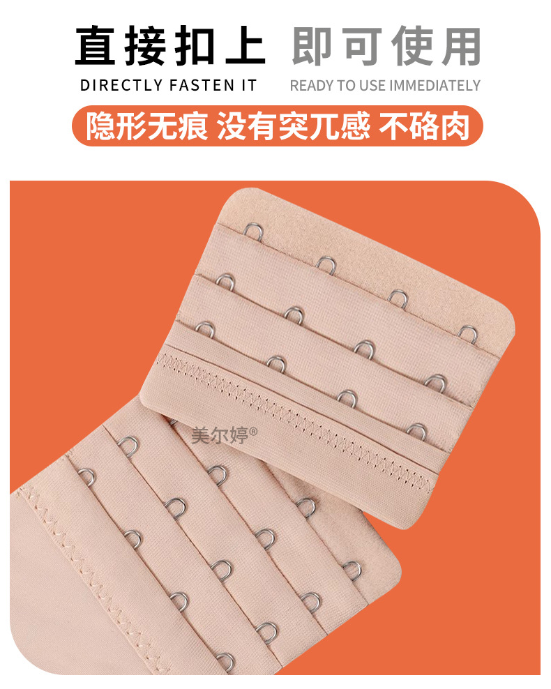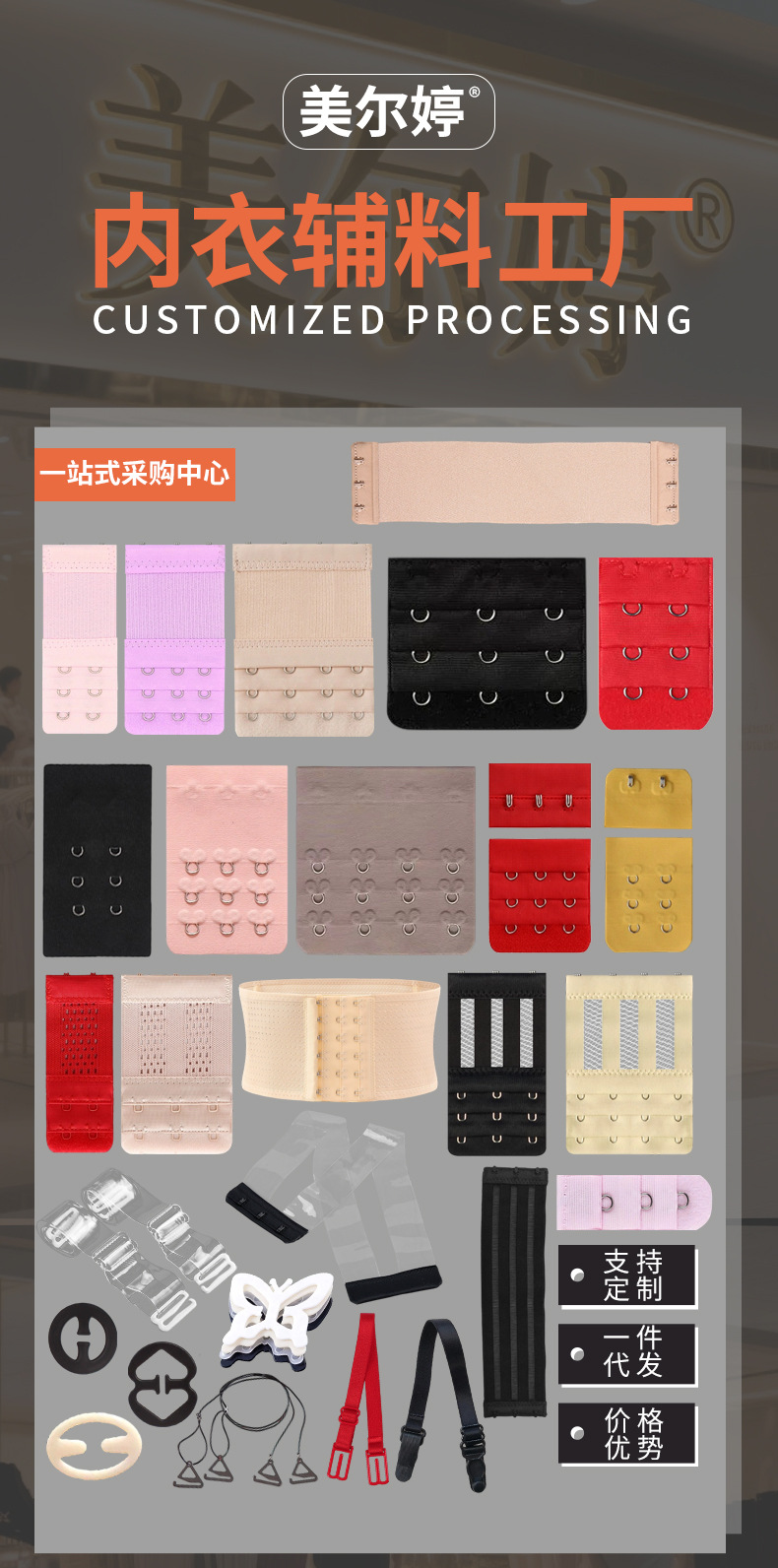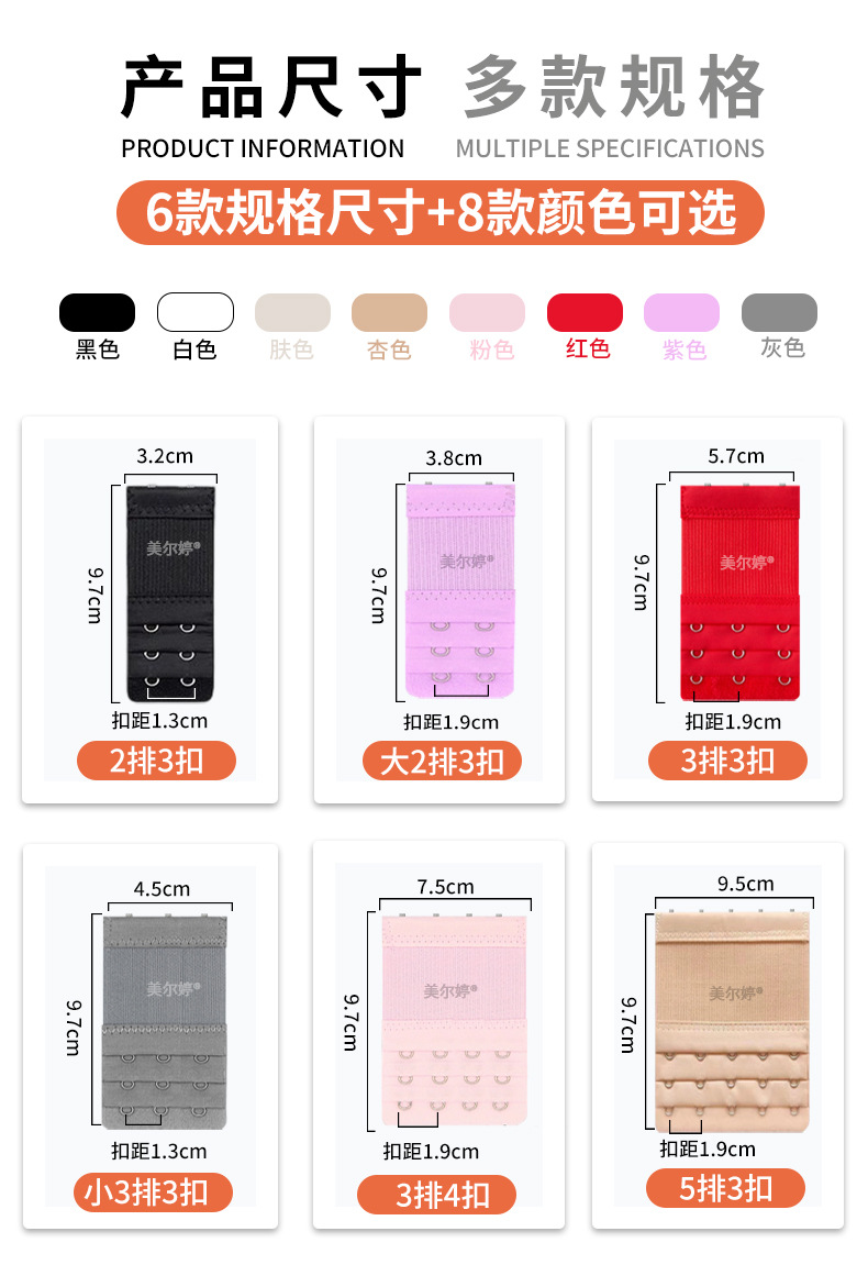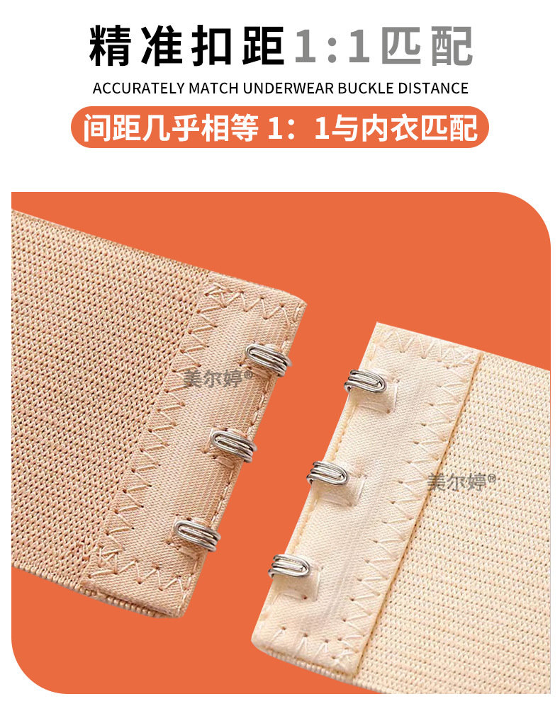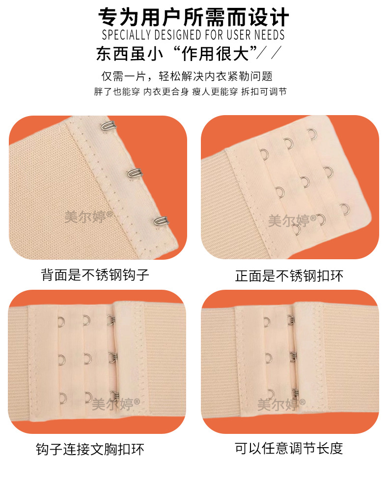 Нижнее белье с четырехрядными крючками-удлинителями бюстгальтера, трехрядной двойной регулируемой пряжкой на спине и удлиненной застежкой-пряжкой.