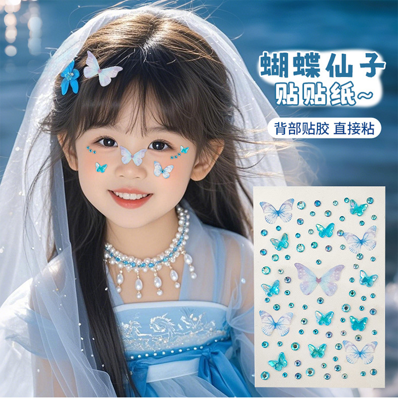 Детские наклейки для макияжа лица, самоклеящиеся алмазные наклейки, сценические алмазные наклейки, цветные алмазные наклейки русалки, концертные наклейки для украшения макияжа