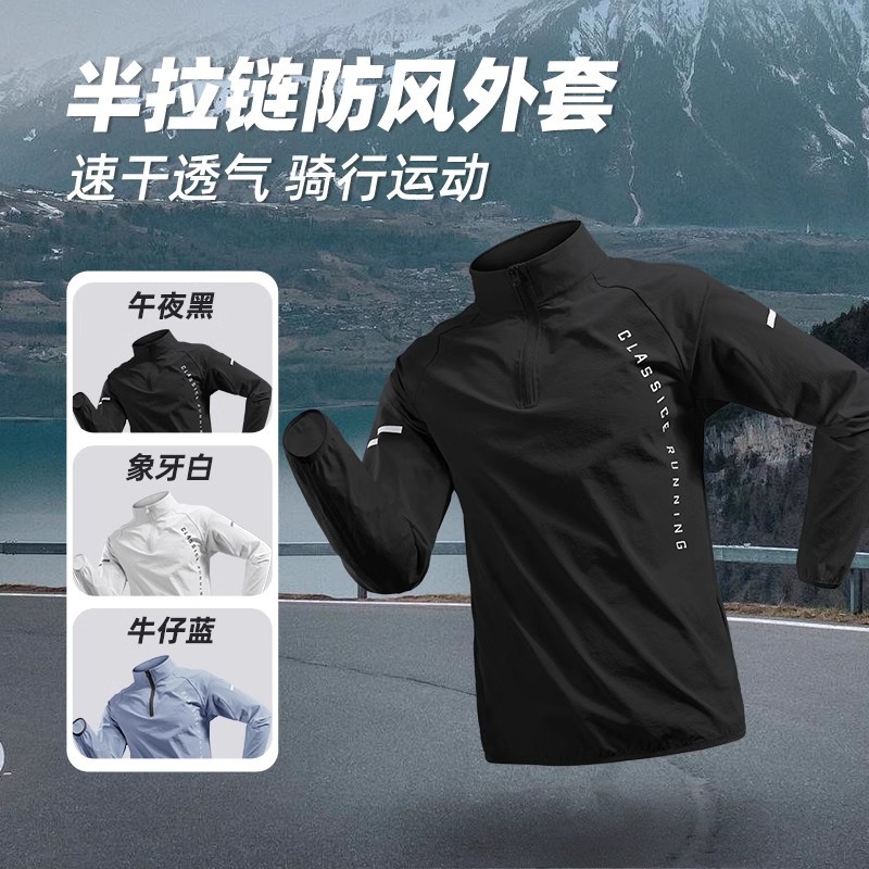 Одежда для фитнеса, мужская летняя одежда из ледяного шелка с длинными рукавами и половиной молнии, быстросохнущая ветрозащитная одежда для велоспорта, спортивные топы для бега