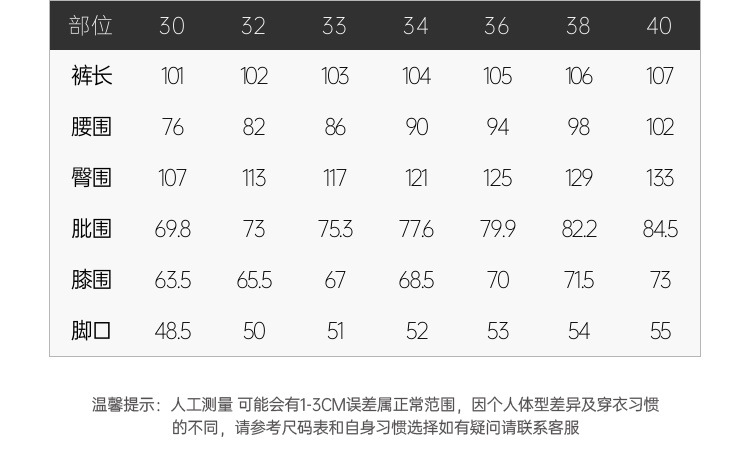 30/L; 32/XL; 33/2XL; 34/3XL; 36/4XL; 38/5XL; 40/6XL; L