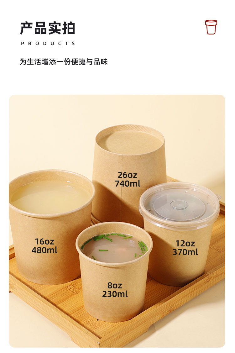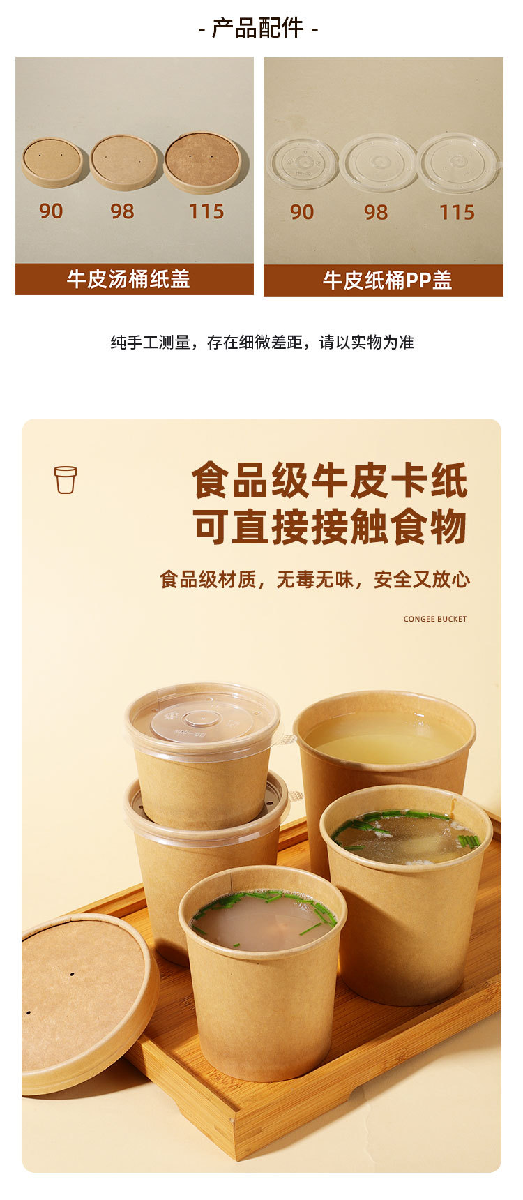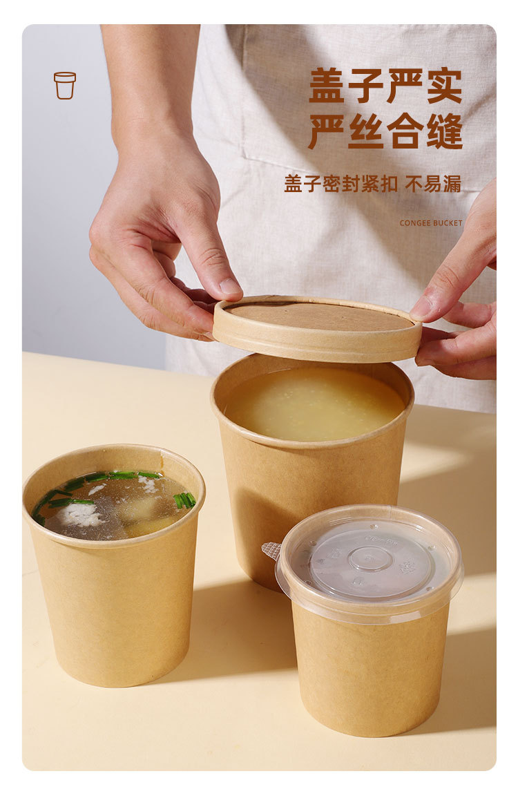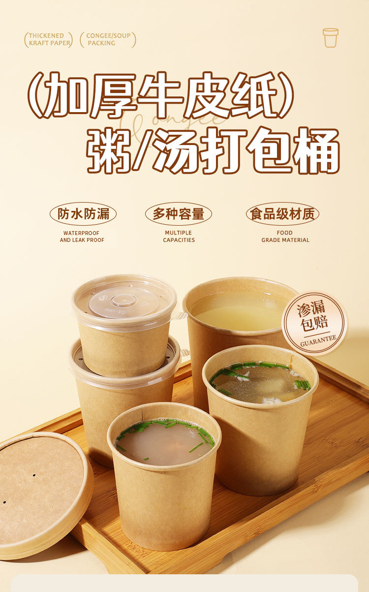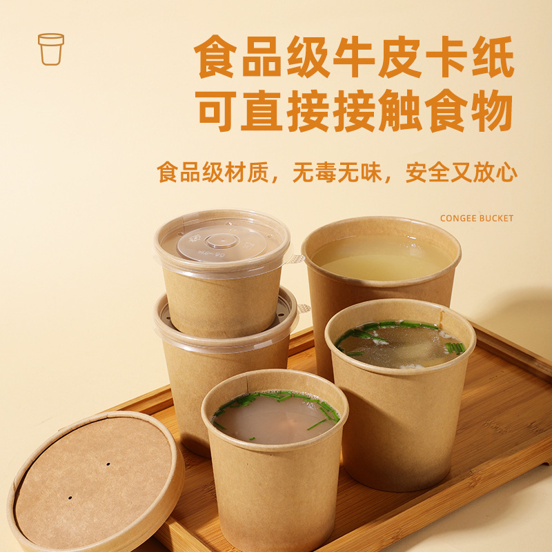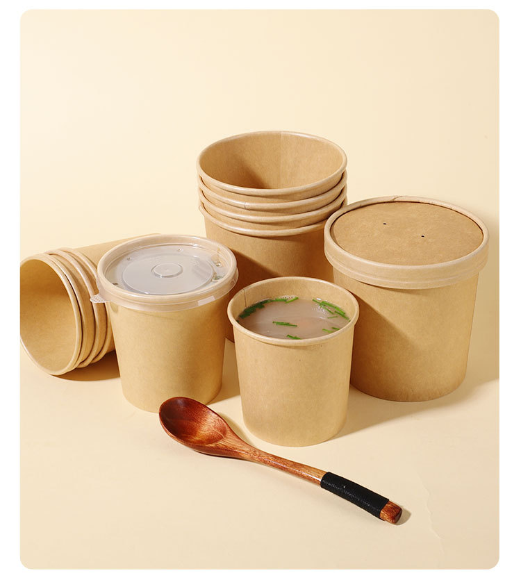 Крафт-бумажный контейнер для супа одноразовый коммерческий оптовый утолщенный пищевой стакан для каши с крышкой для упаковки супа на вынос