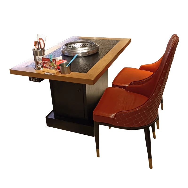 Бездымные коммерческие шампуры из цельного дерева, сланец, гриль, мраморный стол для горячего горшка, индукционная плита, встроенный стол для барбекю и комбинация стульев