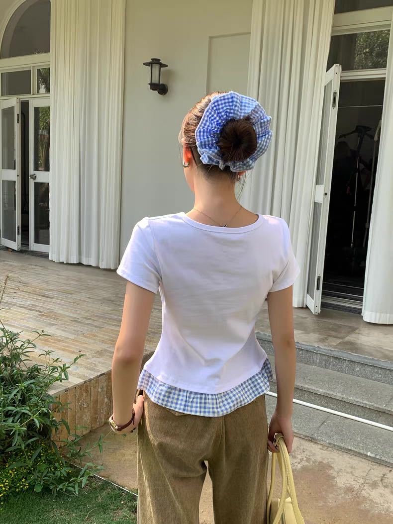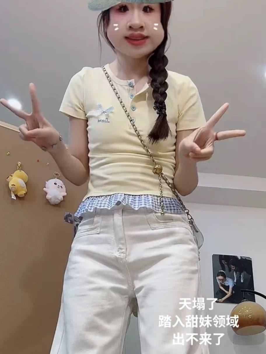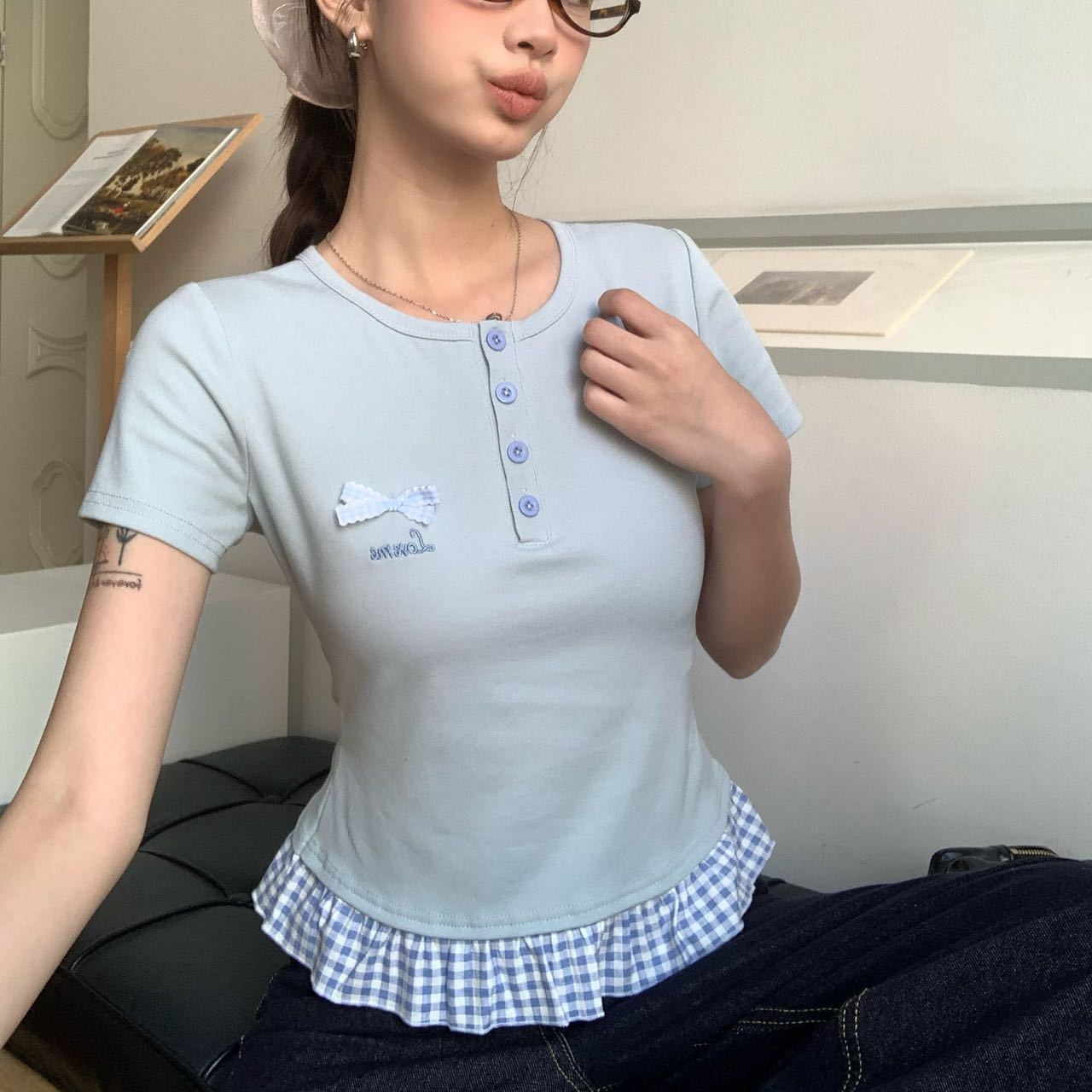 Желтая поддельная футболка из двух частей с допамином для женщин, летний новый стильный топ с милым бантом для маленьких людей