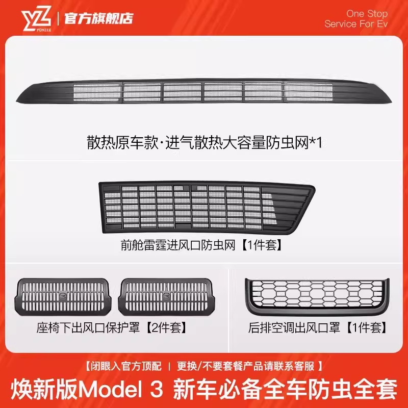 YZ подходит для новой версии Tesla Model Y/3, защитная сетка для защиты от насекомых, защитная крышка для воздухозаборника, аксессуары для модификации Ya, набор из трех предметов