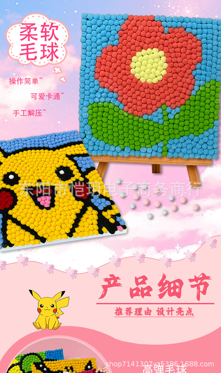 Детская ручная работа, рисование меховыми шариками, сделай сам, полная роспись меховыми шариками, образовательная мультяшная анимационная роспись, роспись, уличные игрушки для ларьков