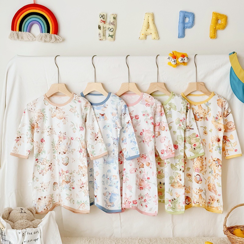 Детская ночная рубашка, пижама, стиль круглый год для мальчиков и девочек, повседневная домашняя одежда без костей из чистого хлопка с длинными рукавами, детская ночная рубашка, спальный мешок.